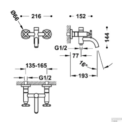 Badkraan Tres Clasic Thermostatisch Inbouw Incl. Regendouche 3-wegs Verouderd Messing Mat