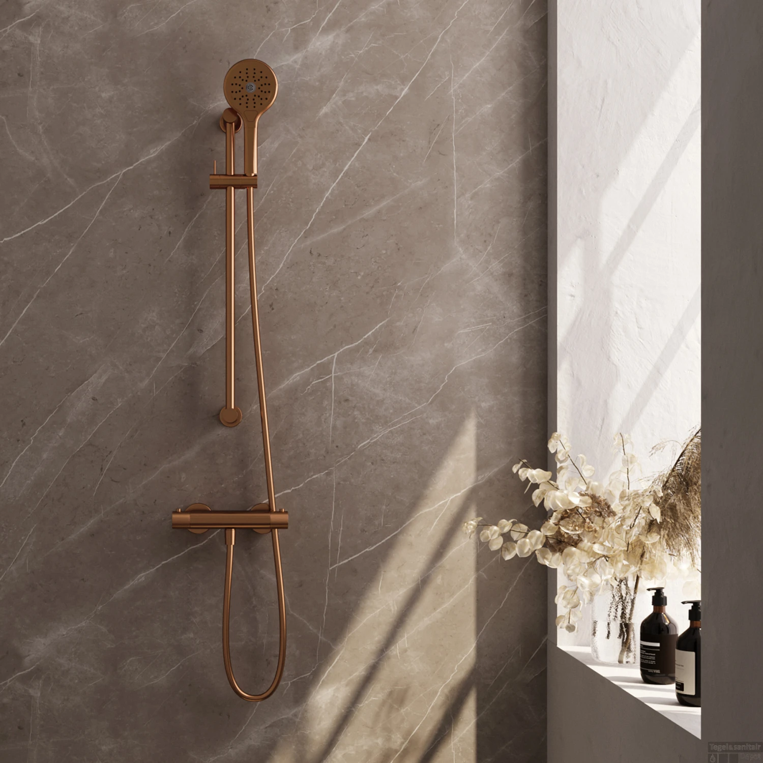 Specificaties Douchekraanset Brauer Copper Carving Opbouw Met Glijstang En Ronde Handdouche Geborsteld Koper: