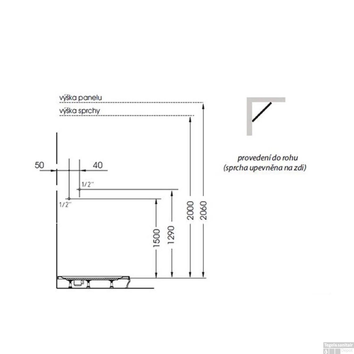Specificaties Douchepaneel 130×25 cm Thermostatisch Hoekgemonteerd Wit Sapho Luk: