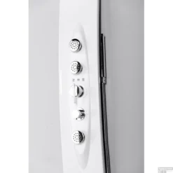 De Luk douchekolom van het merk Sapho heeft een strak design en past daardoor uitstekend in de moderne badkamer. De ABS handdouche heeft een staaf design en zit bevestigd aan een doucheslang van 150 centimeter, de doucheslang is gemaakt van roestvrij staal en heeft een dubbel ontgrendelingsslot. De douchekop heeft een diameter van 19 cm en beschikt over een waterval straal. Het paneel heeft afmeting van 130 x 25 cm (HxB) en is van volledig van acryl versterkt met glasvezels, de achterkant van het paneel is grijs ABS. Als extra beschikt de douchepaneel over een planchet waarop u diverse (badkamer) producten kwijt kunt.