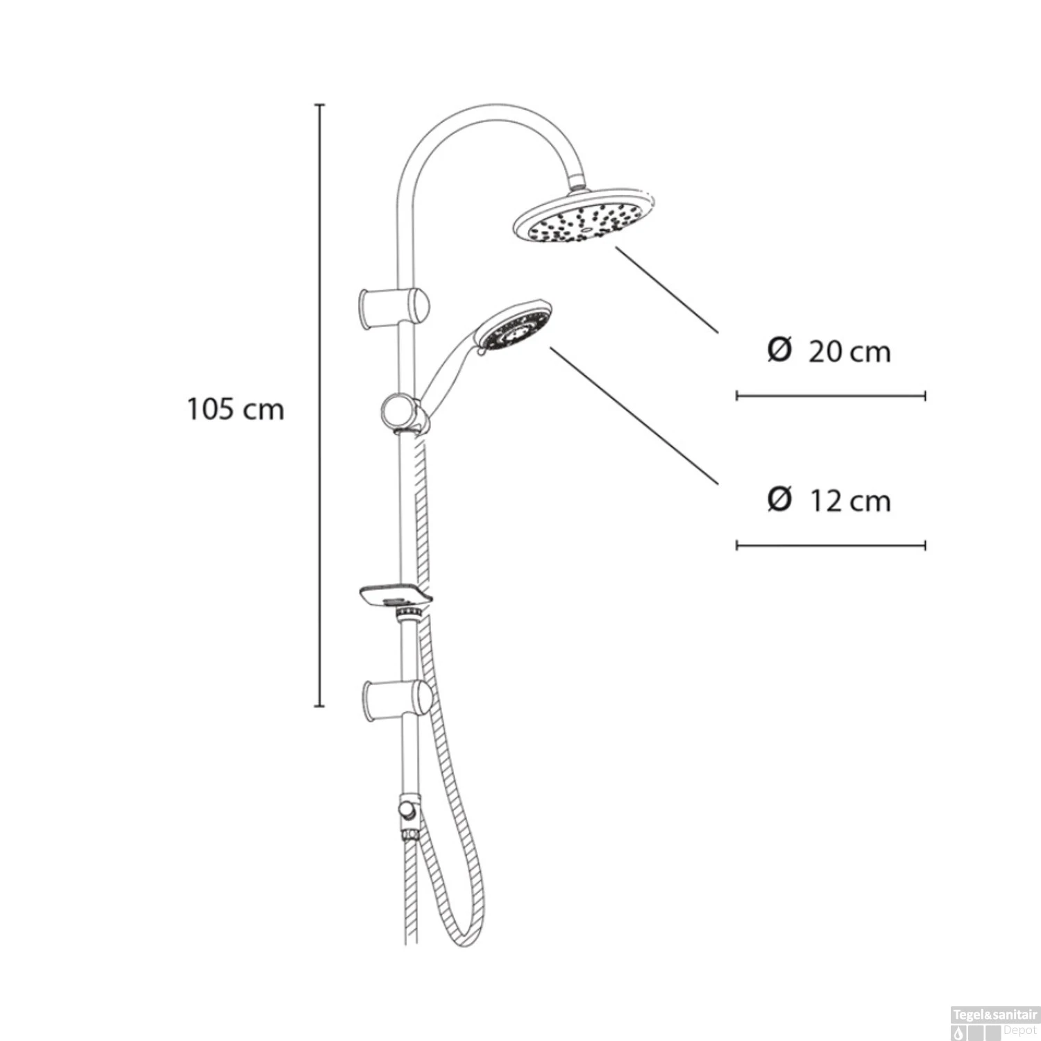 De handdouche en het zeepbakjes worden beiden gemonteerd op de glijstang. Het is niet mogelijk om de hoofd en handdouche te monteren op een andere glijstang (bijvoorbeeld; een reeds gemonteerde glijstang). De douchekoppen van de hand- en hoofddouche zijn beiden voorzien van antikalk rubbers om waterlekken te voorkomen.