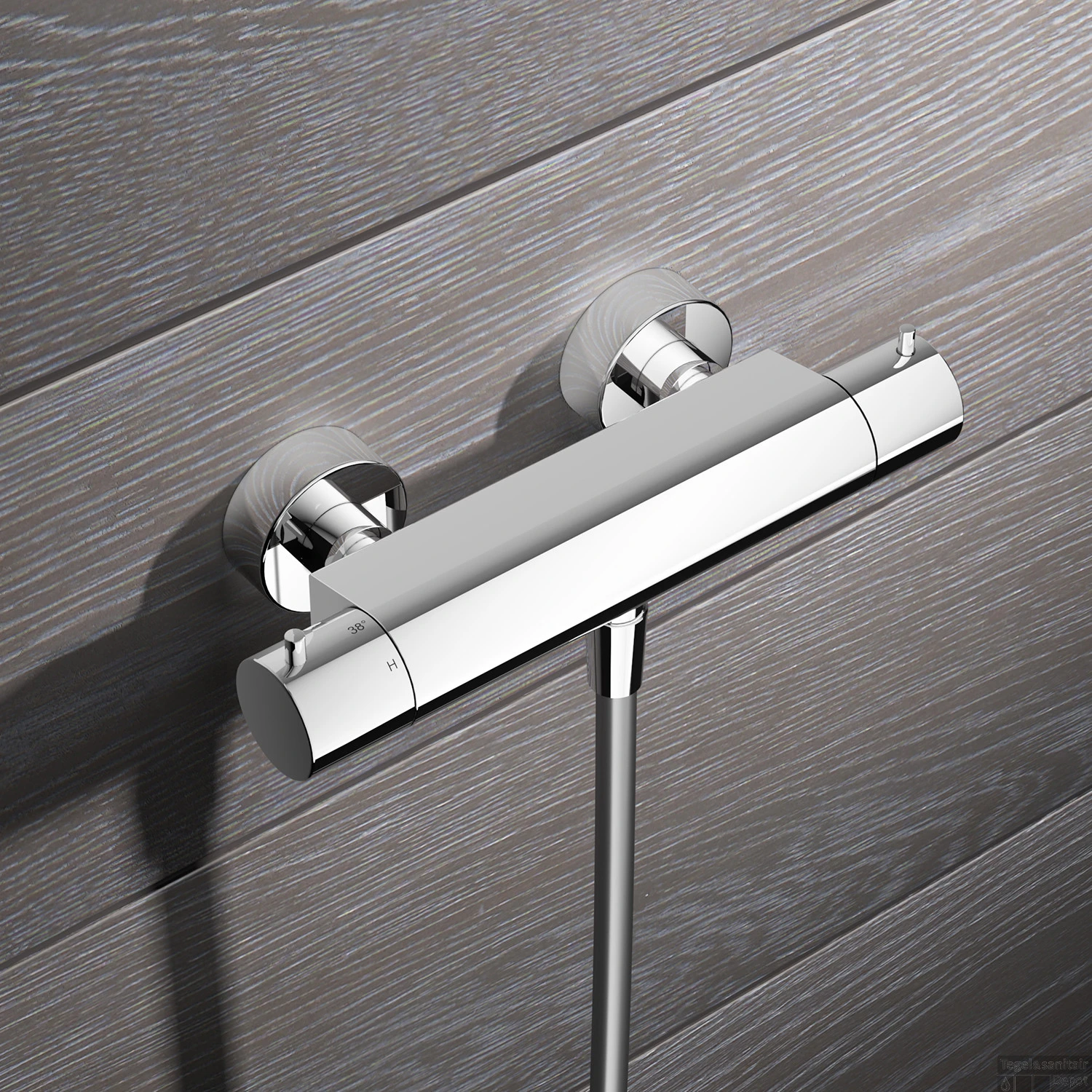 De praktische douchekraan voorzien van thermostaatfunctie. Het fijne van een thermostaatkraan, is dat het door u ingestelde temperatuur van het water exact gelijk blijft. Via thermostatische kleppen wordt het koude en hete water zo gemengd dat het water een constante temperatuur heeft. Wanneer de watertoevoer wijzigt, reageert de thermostaat direct.