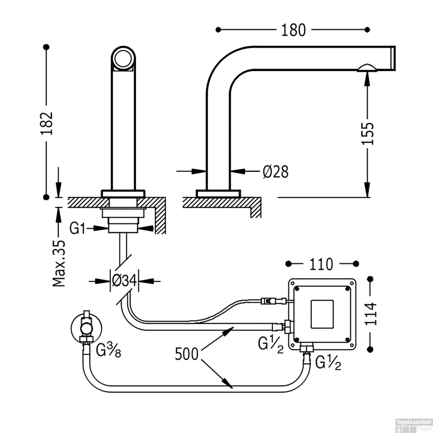 Specificaties Elektronische Fonteinkraan Tres Trestronic Touch-Tres 1 Uitgang Chroom:
