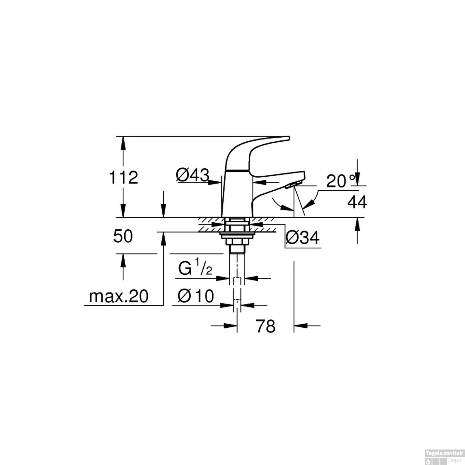 - Hoogte uitloop: 4,4 cm