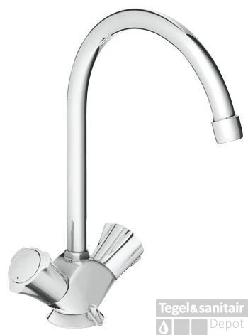Tijdloze kraan van het merk Grohe uit de serie Costa-l levert kwaliteit en is makkelijk in gebruik ideaal voor in de keuken of als wastafelkraan. De keukenkraan heeft een uitloop van 18,3 cm. De kraan kan bediend worden met tweegrepen.