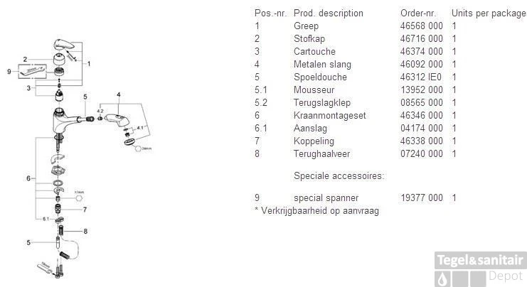 | Vaatdouche | Uittrekbare kraanuitloop |