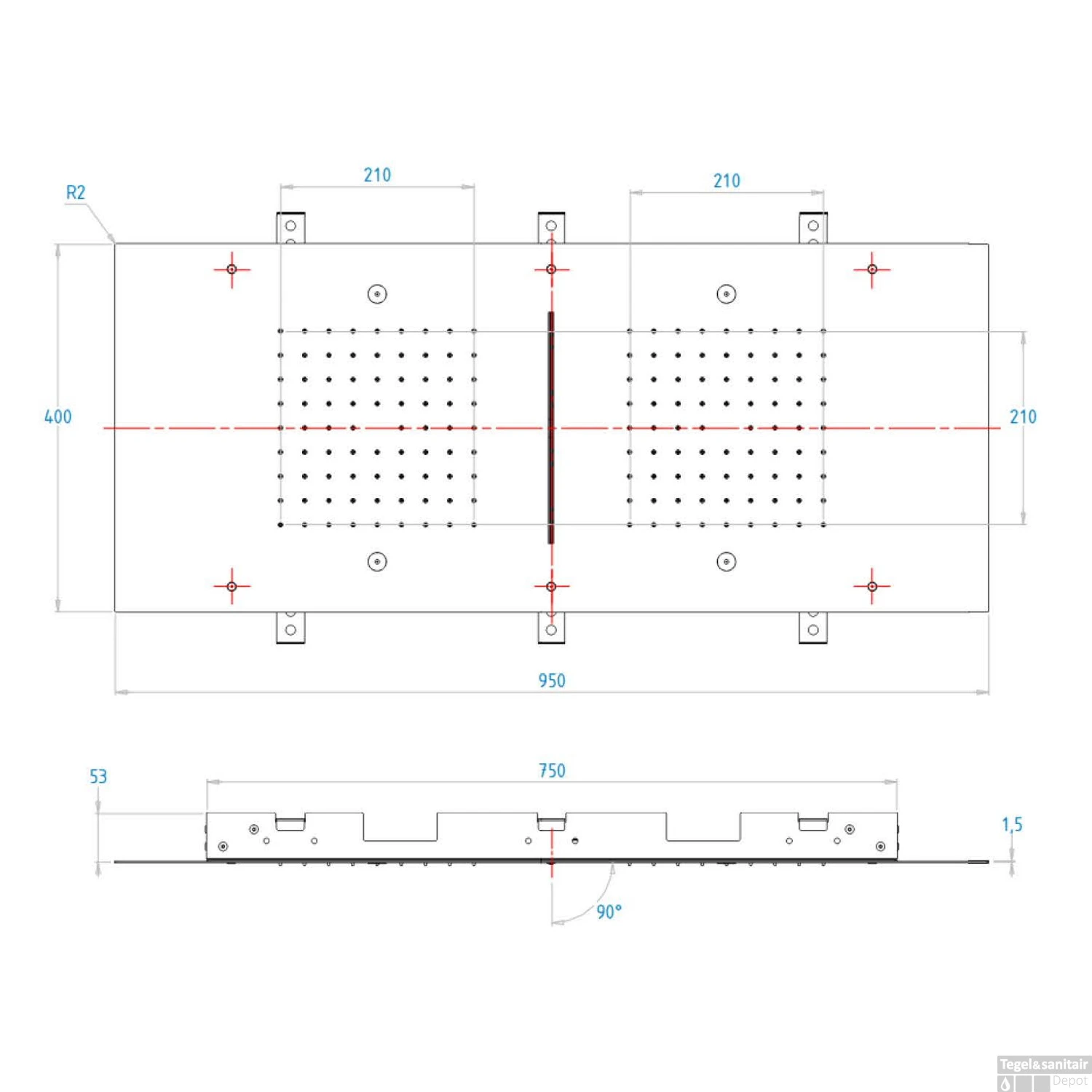 Deze “showerlicious” hoofddouche komt uit de Nesso serie van het merk Lagoo. De hoofddouche heeft een afmeting van 95 x 40 cm. De hoofddouche is gemaakt van roestvrij staal (RVS) en is voorzien van een nikkelen kleur. In deze hoofddouche zit een cascade die zorgt voor een klein waterval effect en de hoofddouche is voorzien van een nevel functie. Het bijzondere aan deze hoofddouche is dat die opgesplitst is in 2 delen waardoor u 2 aparte regenvallen heeft. Perfect voor 2 personen.