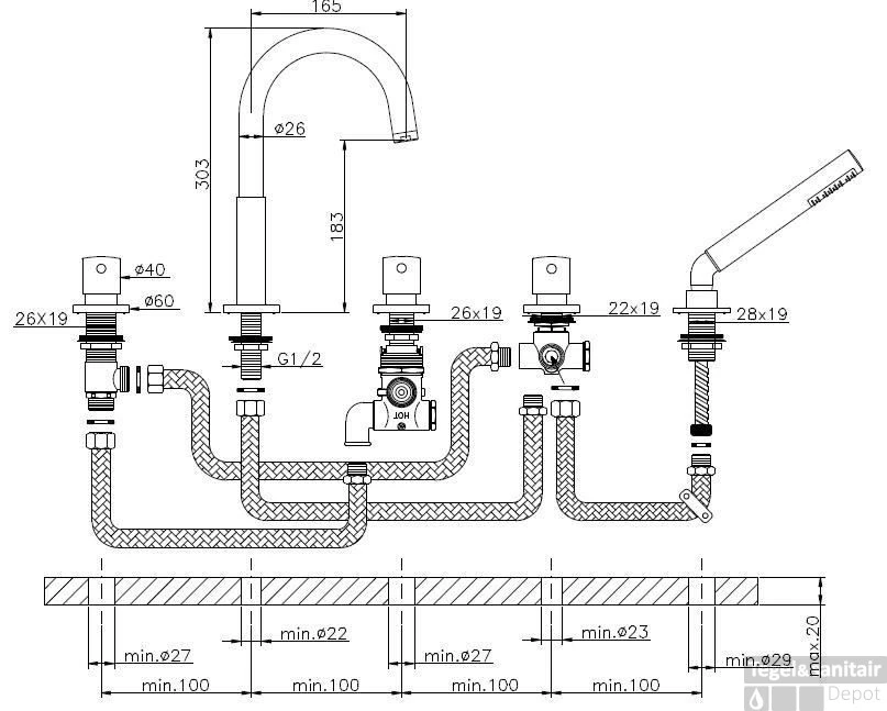 Artikelnummer: HUB162MKR01HNS Categorieën: Badkraan, Badrandkraan