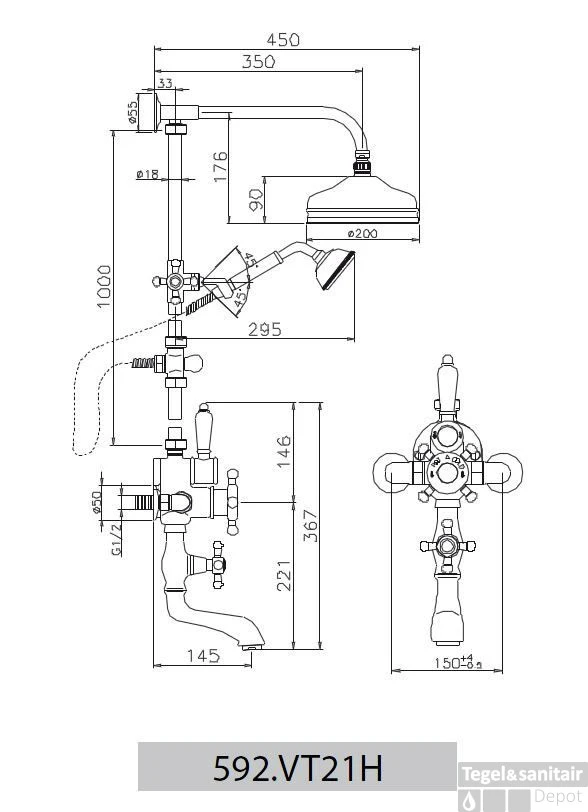 Artikelnummer: HUB592VT21HCA Categorieën: Opbouw Regendouche, Regendouche