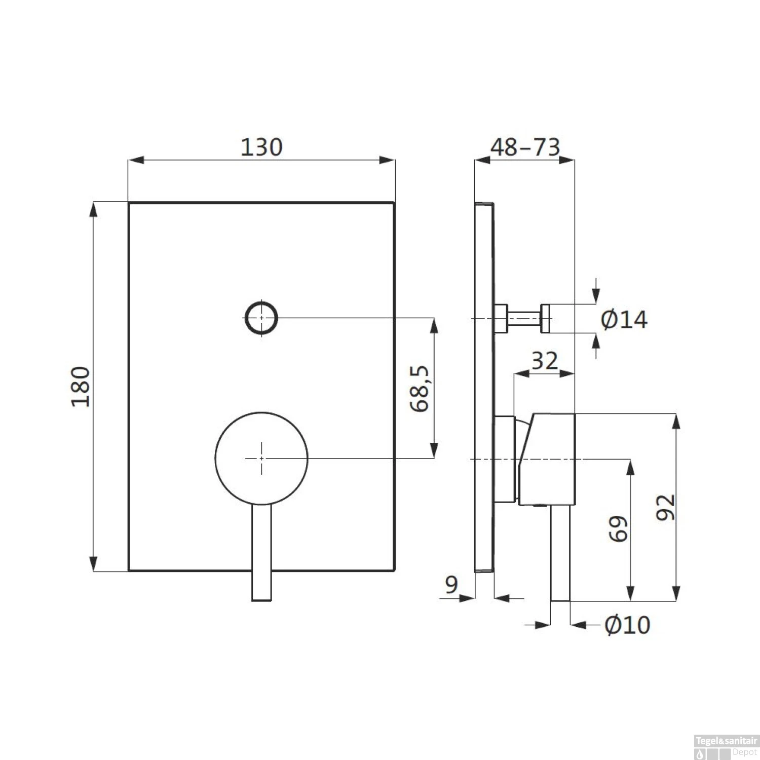 Specificaties Inbouw Badkraan Herzbach Design IX met Omstelknop Koper: