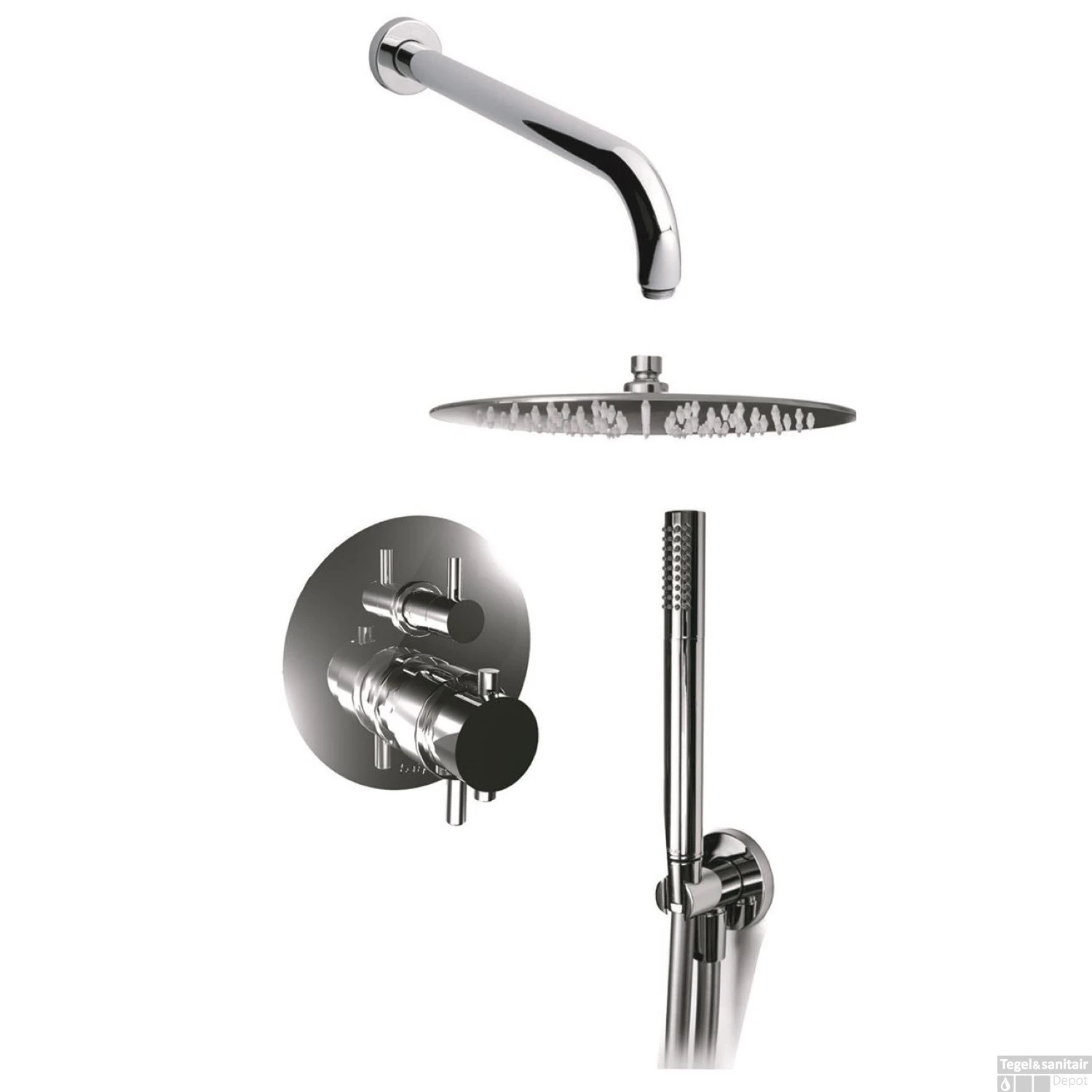 Inbouw Regendoucheset Luca Sanitair Bongio Thermostatisch Ronde Hoofddouche Chroom
