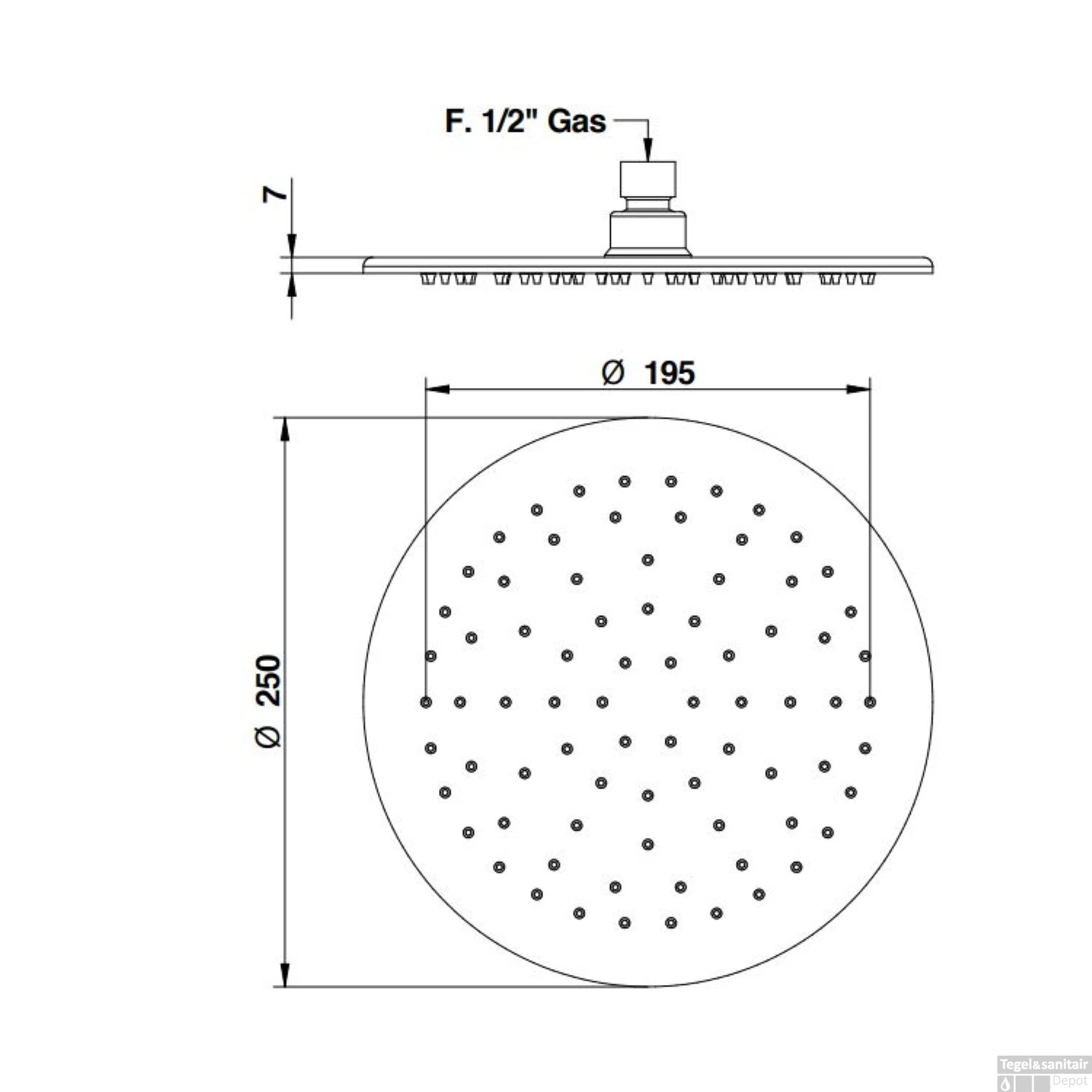 - – Ronde hoofddouche (diameter: 25 cm)