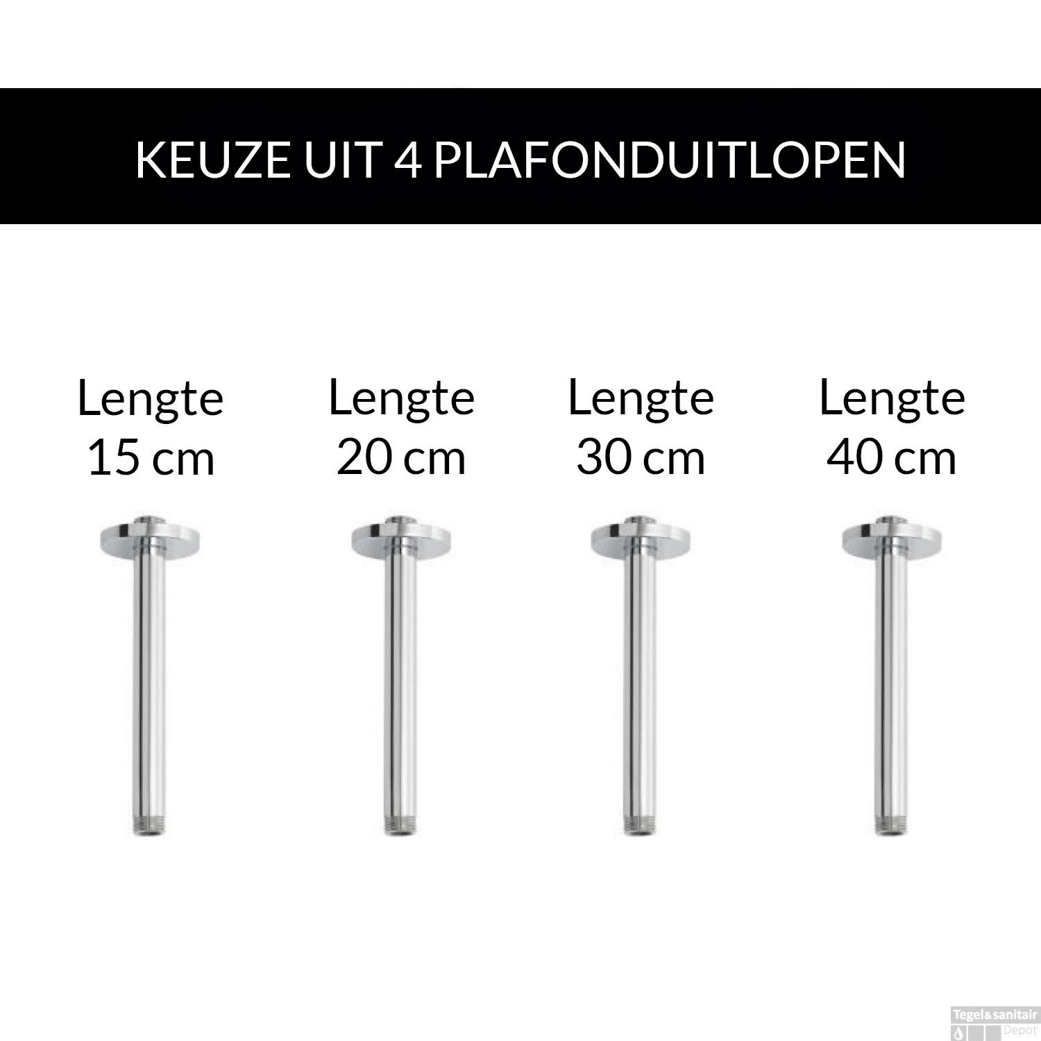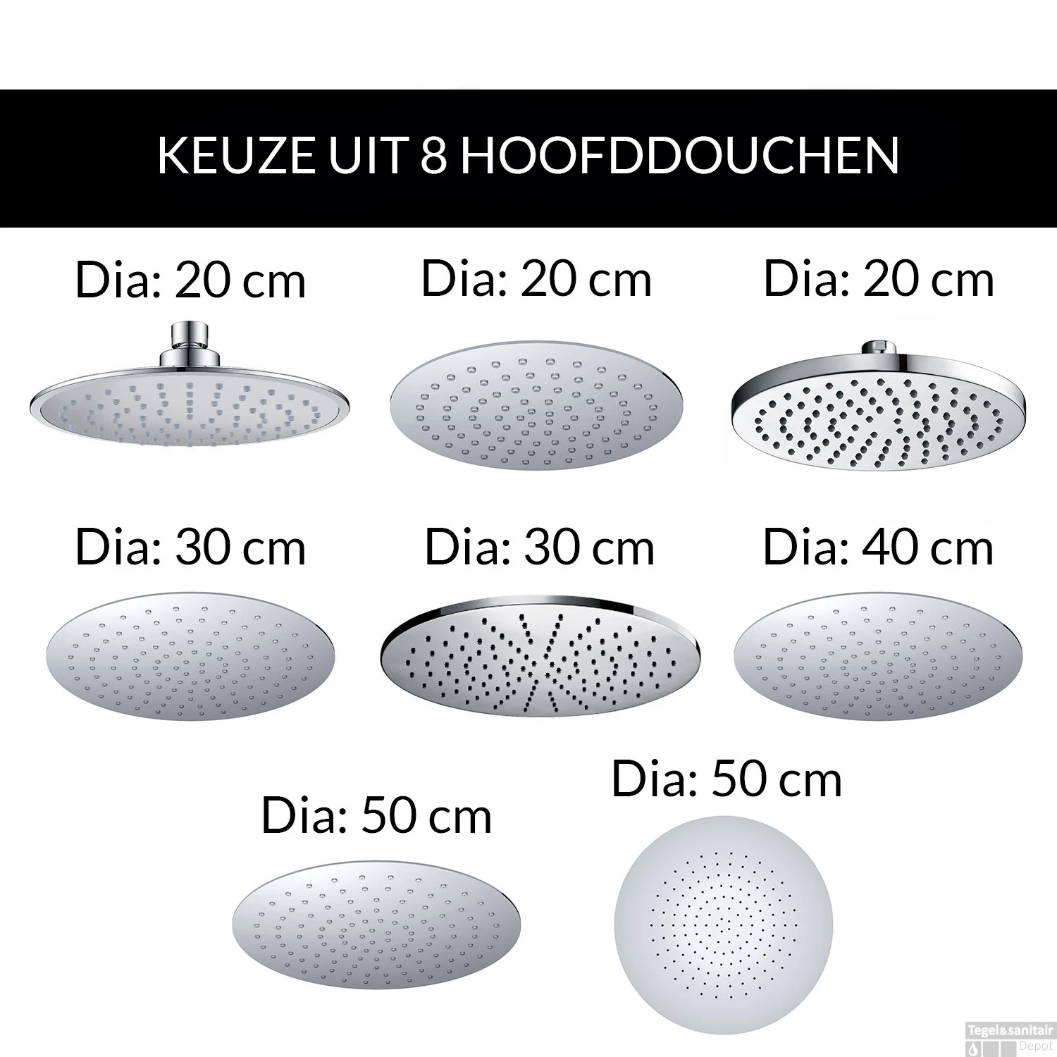 Verder heeft u om de set compleet te maken de keuze uit 8 douchekoppen, 4 plafonduitlopen, 2 doucheslangen en 2 bijpassende handdouches.