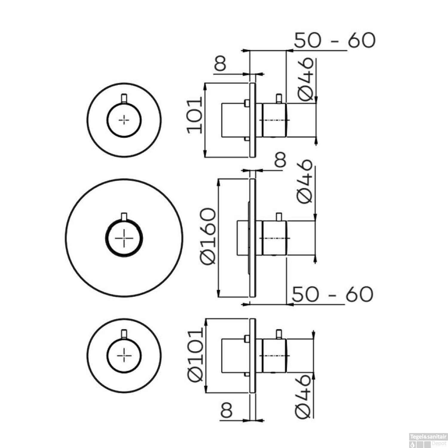 Specificaties Inbouw Thermostaat Lagoo Garda met 3-weg Omstel en Stopkraan Geborsteld Koper: