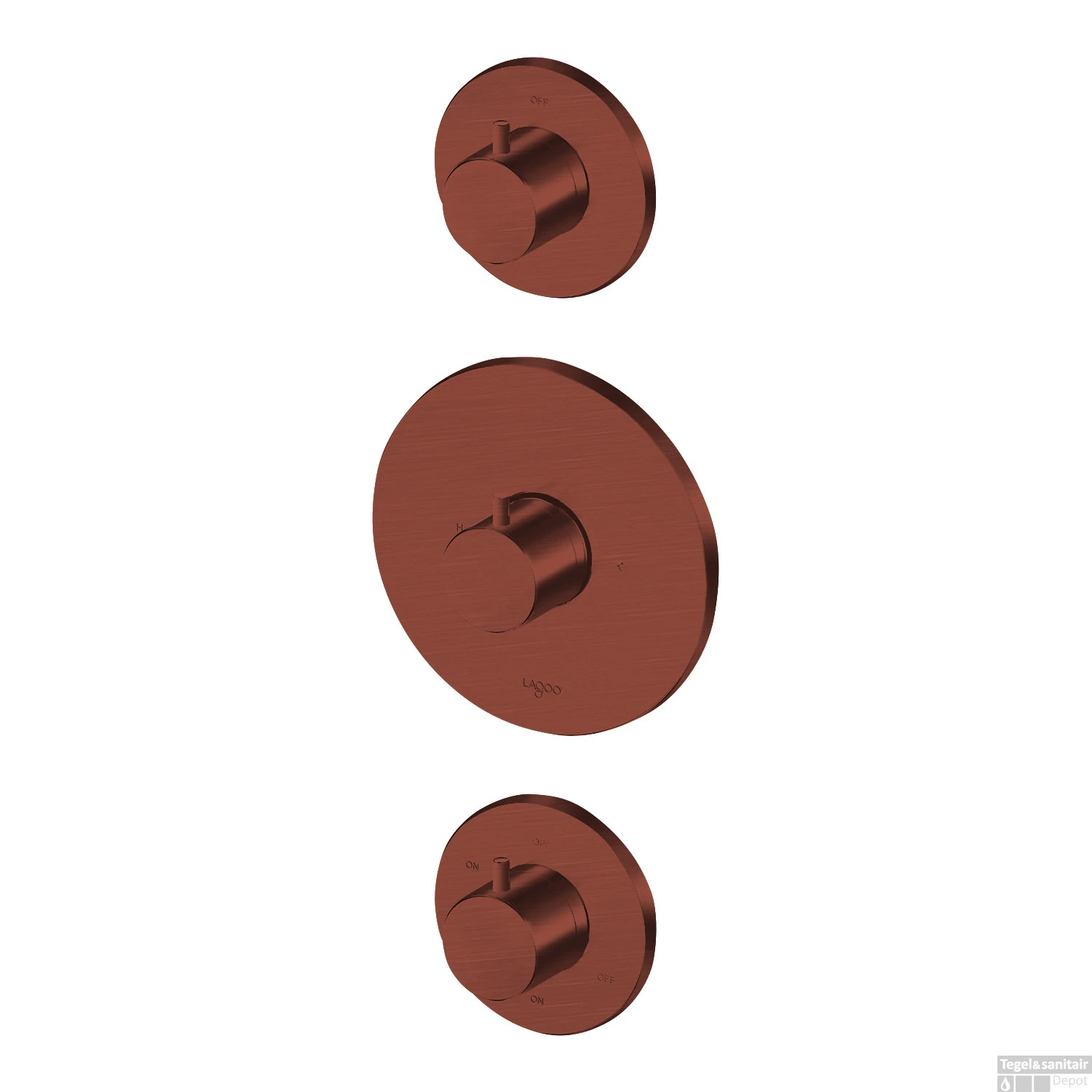 Inbouw Thermostaat Lagoo Garda met 3-weg Omstel en Stopkraan Geborsteld Koper