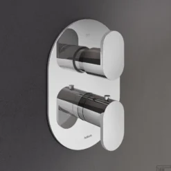 De thermostaat bestaat uit 2 bedieningen. Een bediening is voor de thermostaat, een bediening om te wisselen van hoofddouche naar handdouche en de andere gebruikt u om de kraan mee aan of uit te zetten. Deze luxe is ideaal voor als u even heerlijk wilt ontspannen. De aftappunten zijn niet gelijktijdig te gebruiken.