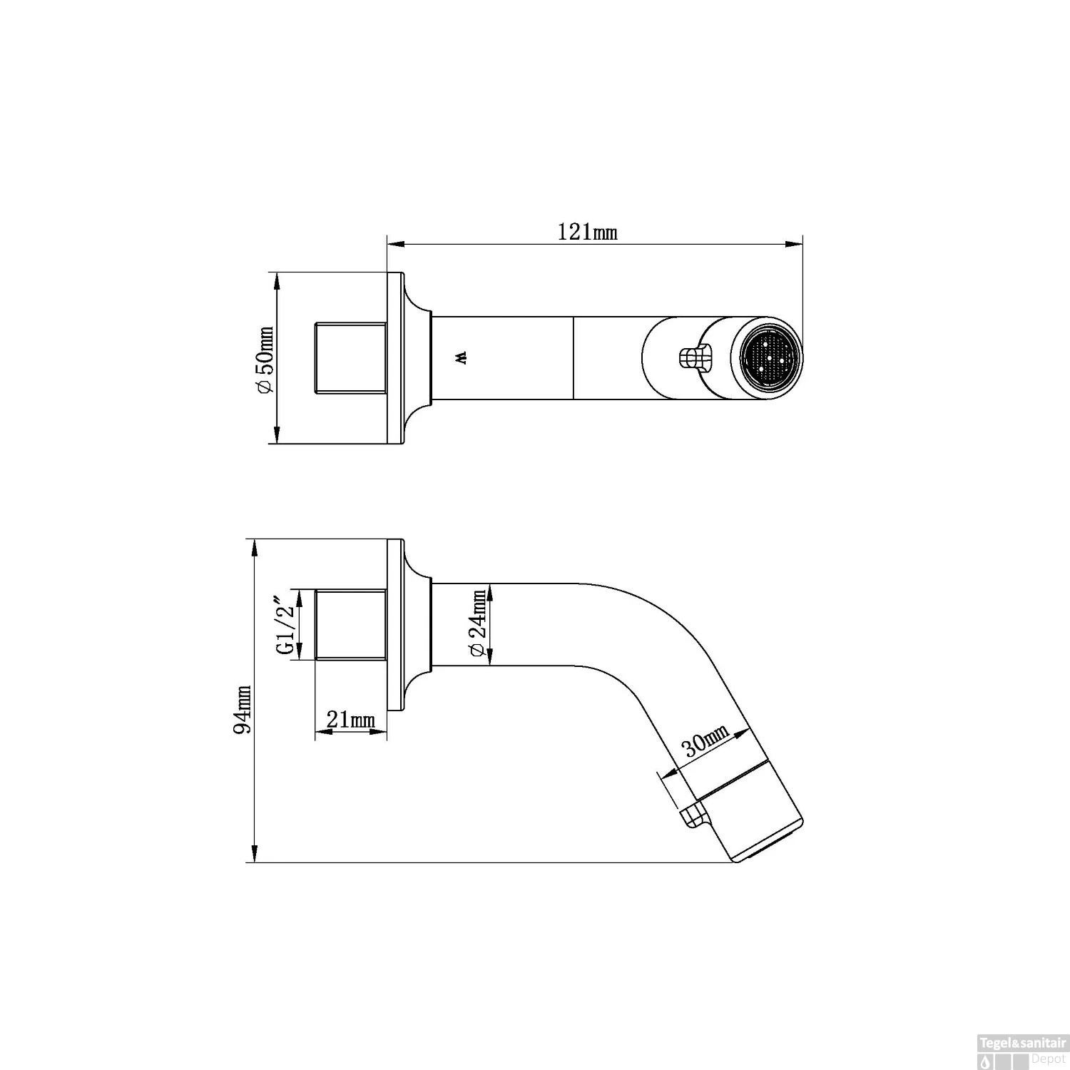 De koudwaterkraan heeft een 1/2″ aansluiting.