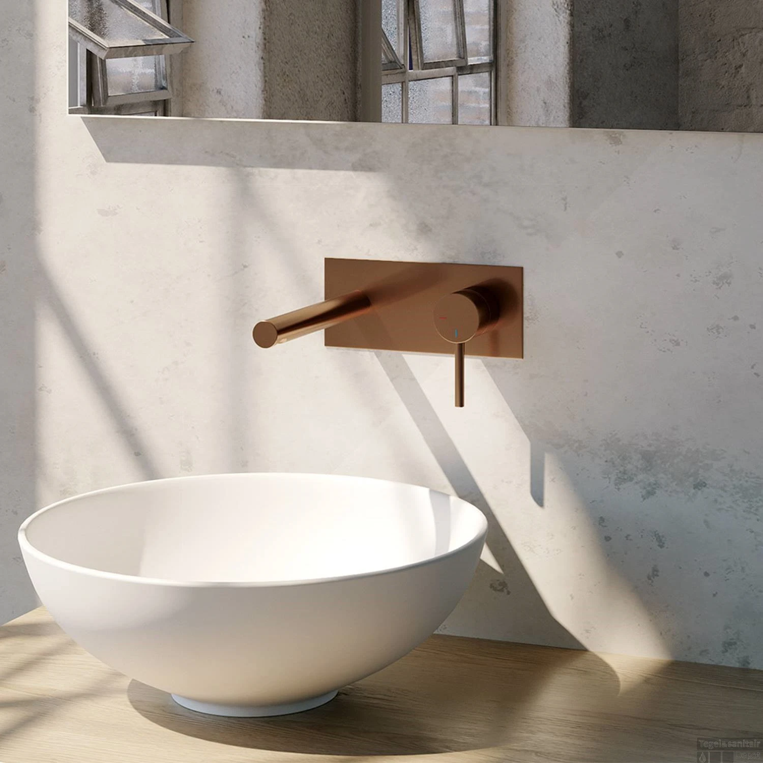 Inbouw Wastafelmengkraan Brauer Copper Edition Coldstart Rechte Uitloop Ronde Hendel Rechts Geborsteld Koper PVD Met Afdekplaat
