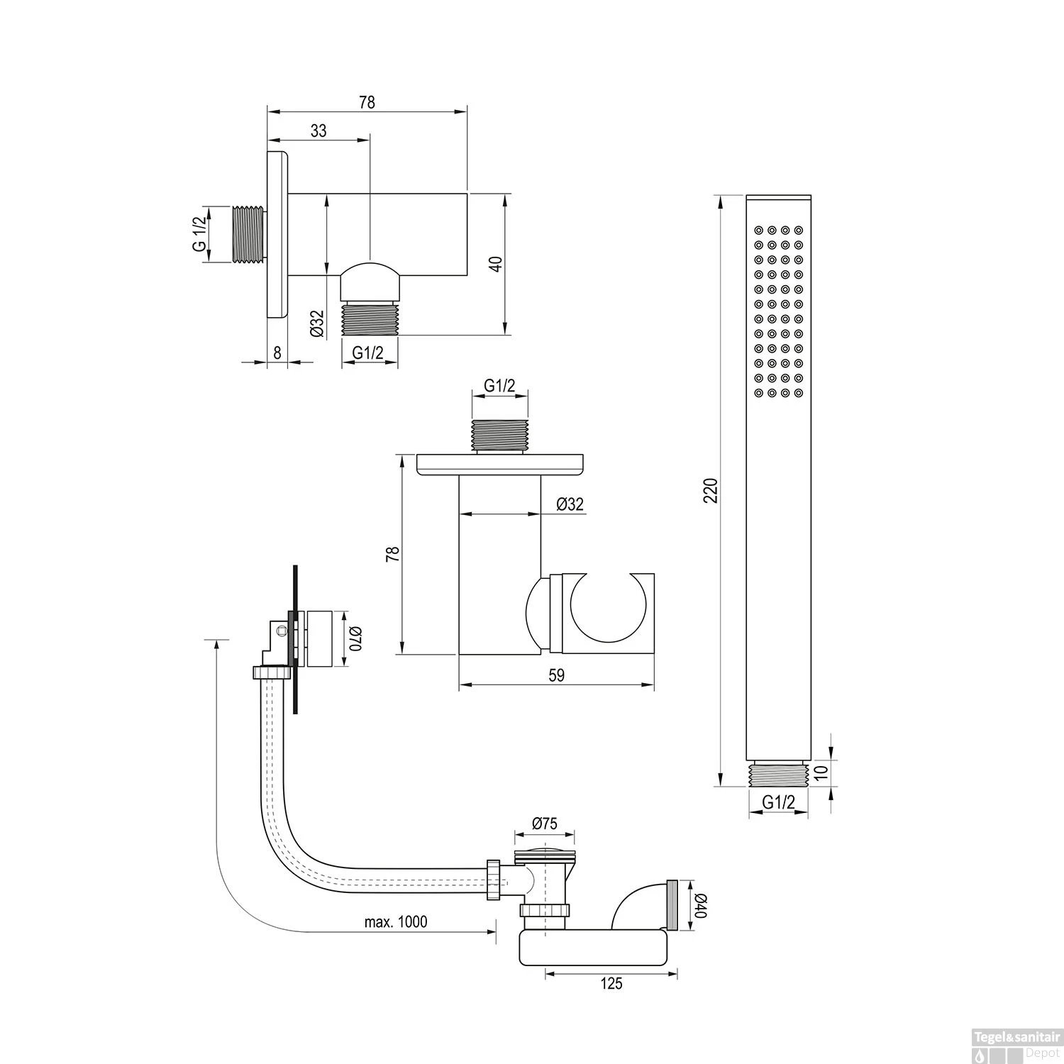 De handdouche is gemaakt van ABS (kunststof), zodat de handdouche niet heet aanvoelt. Deze inbouwthermostaatset bevat ook een badvulwaste. Met de badafvoerplug, zorgt u ervoor dat het bad afgesloten is, zodat het vol kan lopen met water.