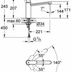 U ontvangt afvoerslangen bij deze kraan. De aansluiting is 3/8″ in diameter. De kraan is geschikt voor een kraangat tot 4.8 cm.