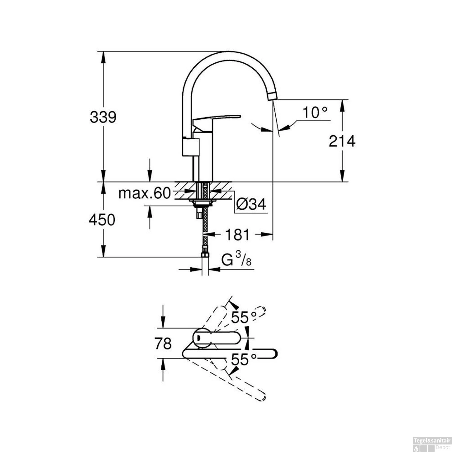 Specificaties Keukenkraan Grohe Wave Cosmopolitan Hoge Uitloop Chroom: