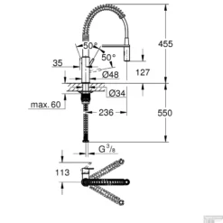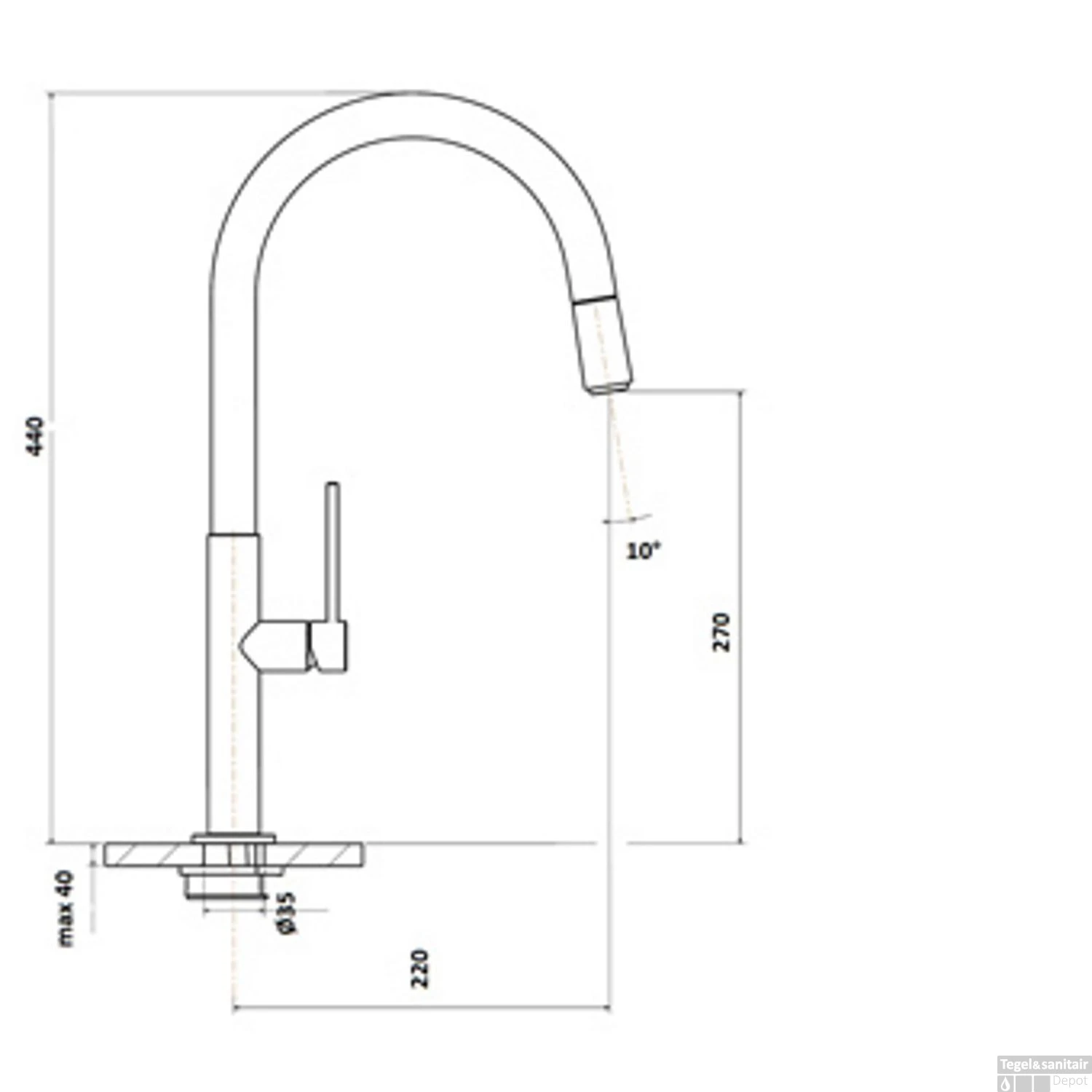 Specificaties Keukenkraan Plieger Rontessa 1-Gats met Uittrekbare Handdouche Chroom: