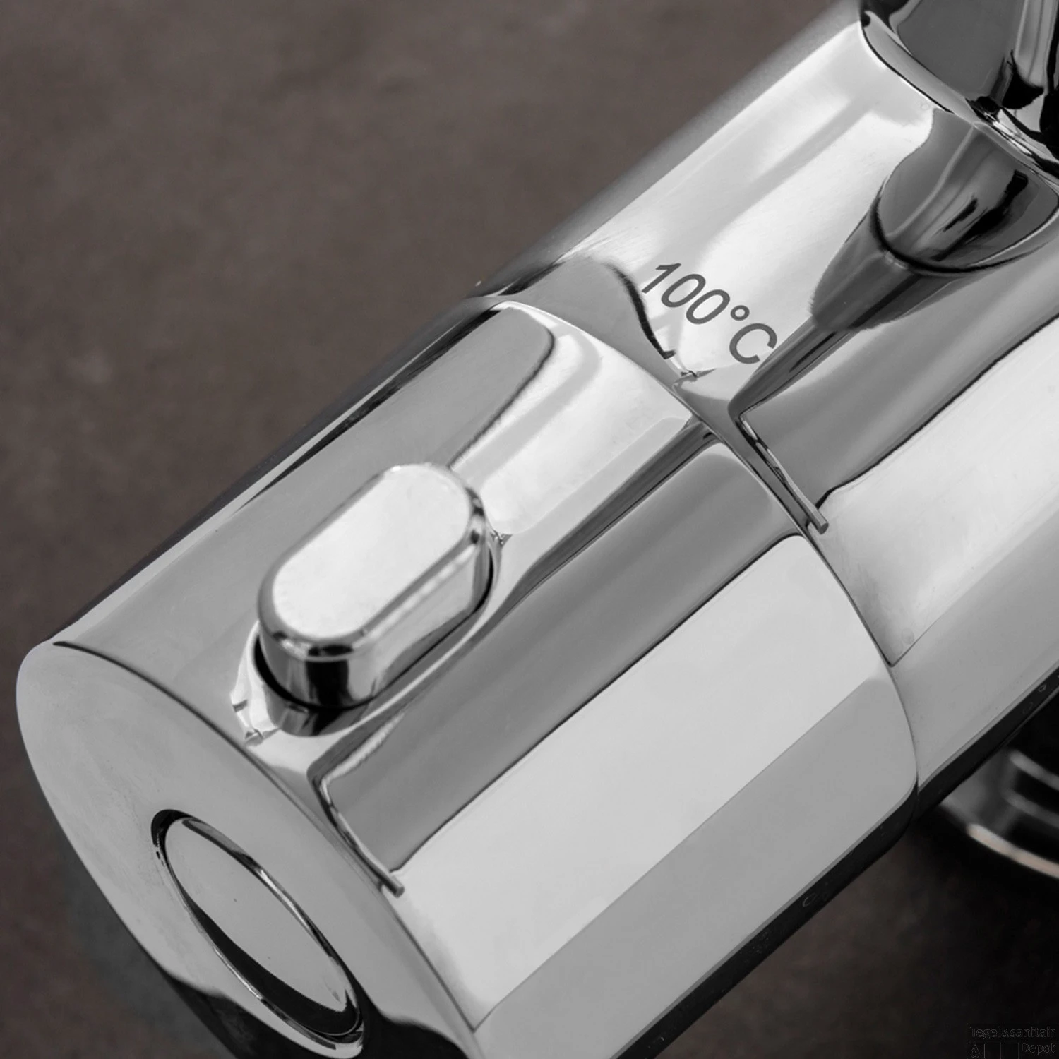 De kraan is uitgerust met een druk-draai-bedienings-knop voor volmaakte veiligheid. Hij wisselt direct van koud naar kokend water en andersom zonder dat de uitloop van de kraan warm wordt.  Het kraangat is net als bij de meeste andere kranen 35 mm.