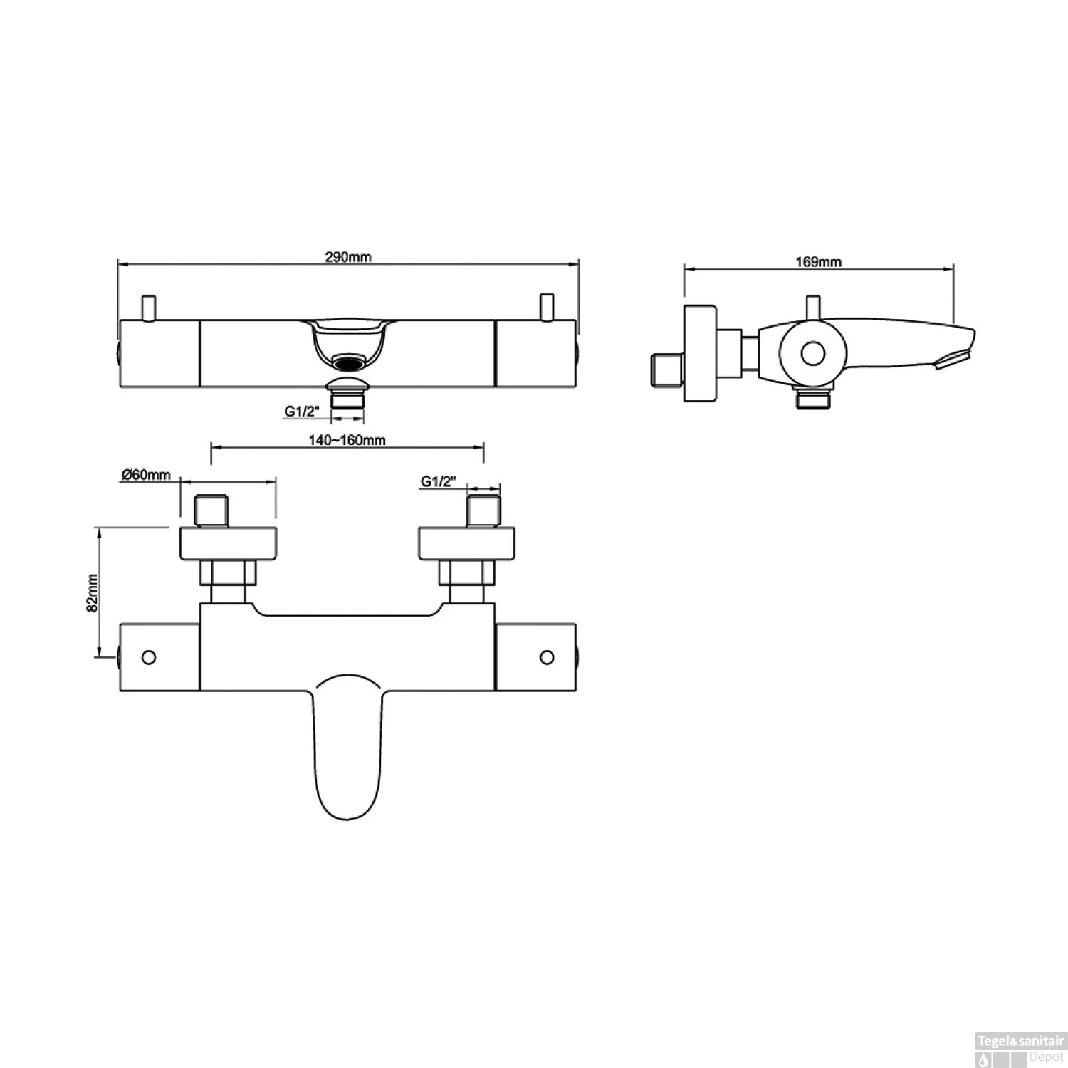 De kraan heeft een hart-op-hart maat van 14-16 cm, terwijl de totale breedte van de badkraan 29 cm is. De uitloop van de badmengkraan heeft een lengte van 16,9 cm. De kraan beschikt over keramische schijven en een veiligheidsslot bij 38 graden. Houd er verder rekening mee dat de kraan beschikt over een 1/2” aansluiting.