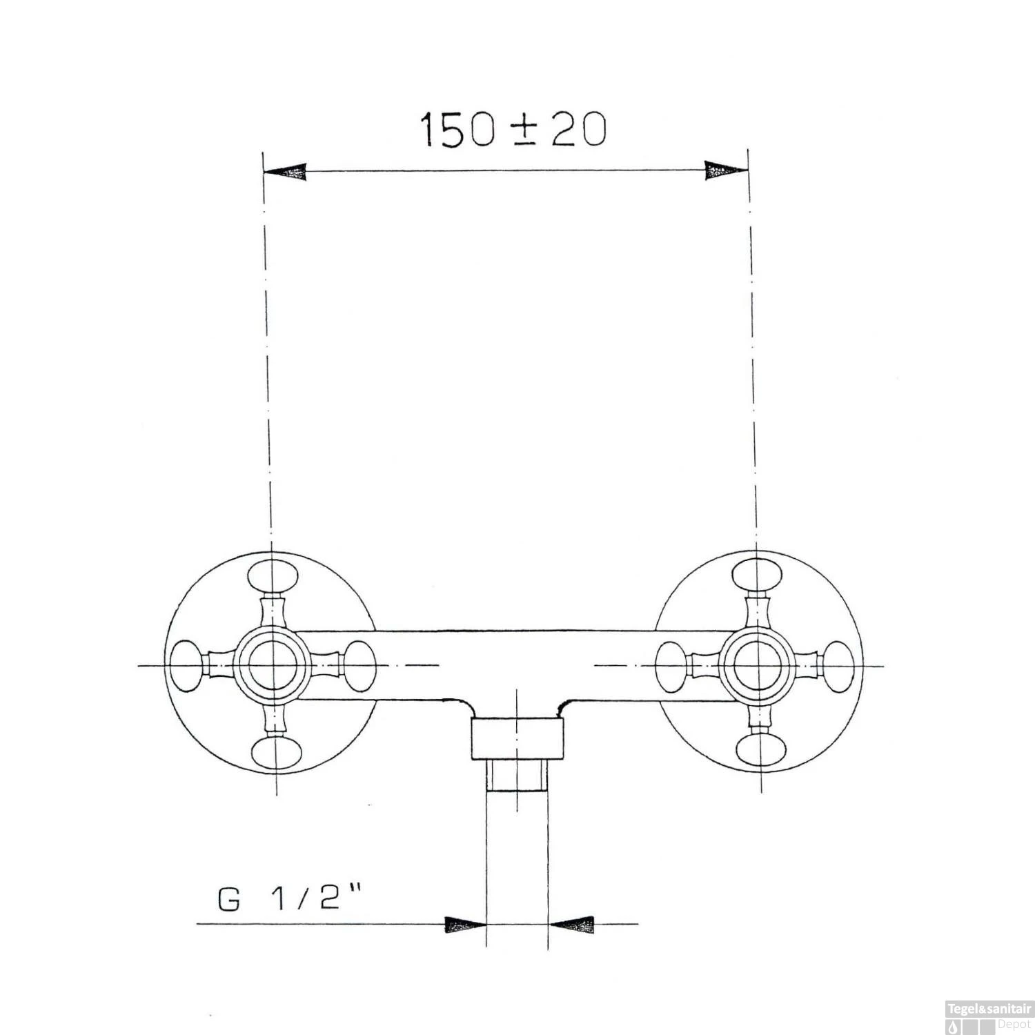Specificaties Opbouw Douchekraan Mengkraan 2-knop Klassiek Brons Sapho Antea: