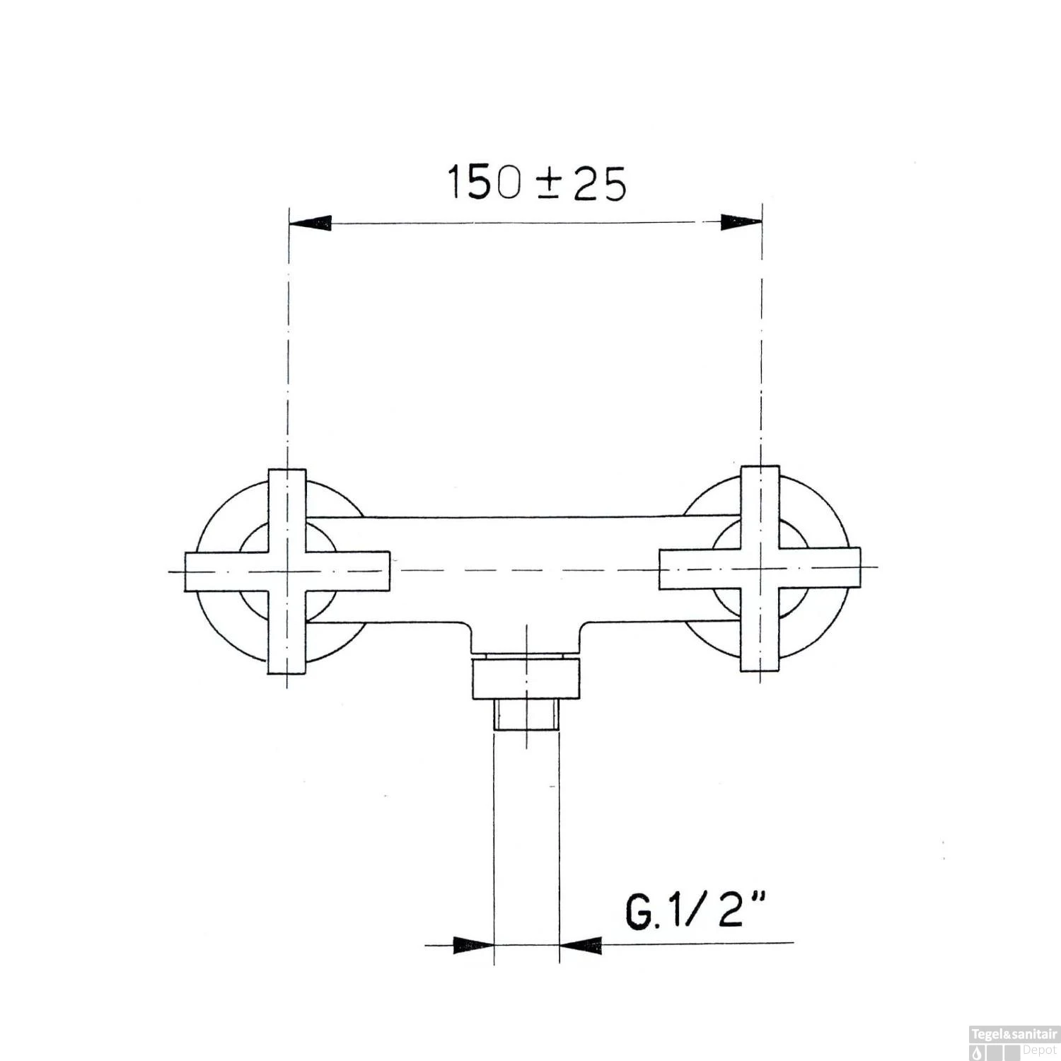 Specificaties Opbouw Douchekraan Mengkraan 2-kruisgreep Chroom Sapho Axia: