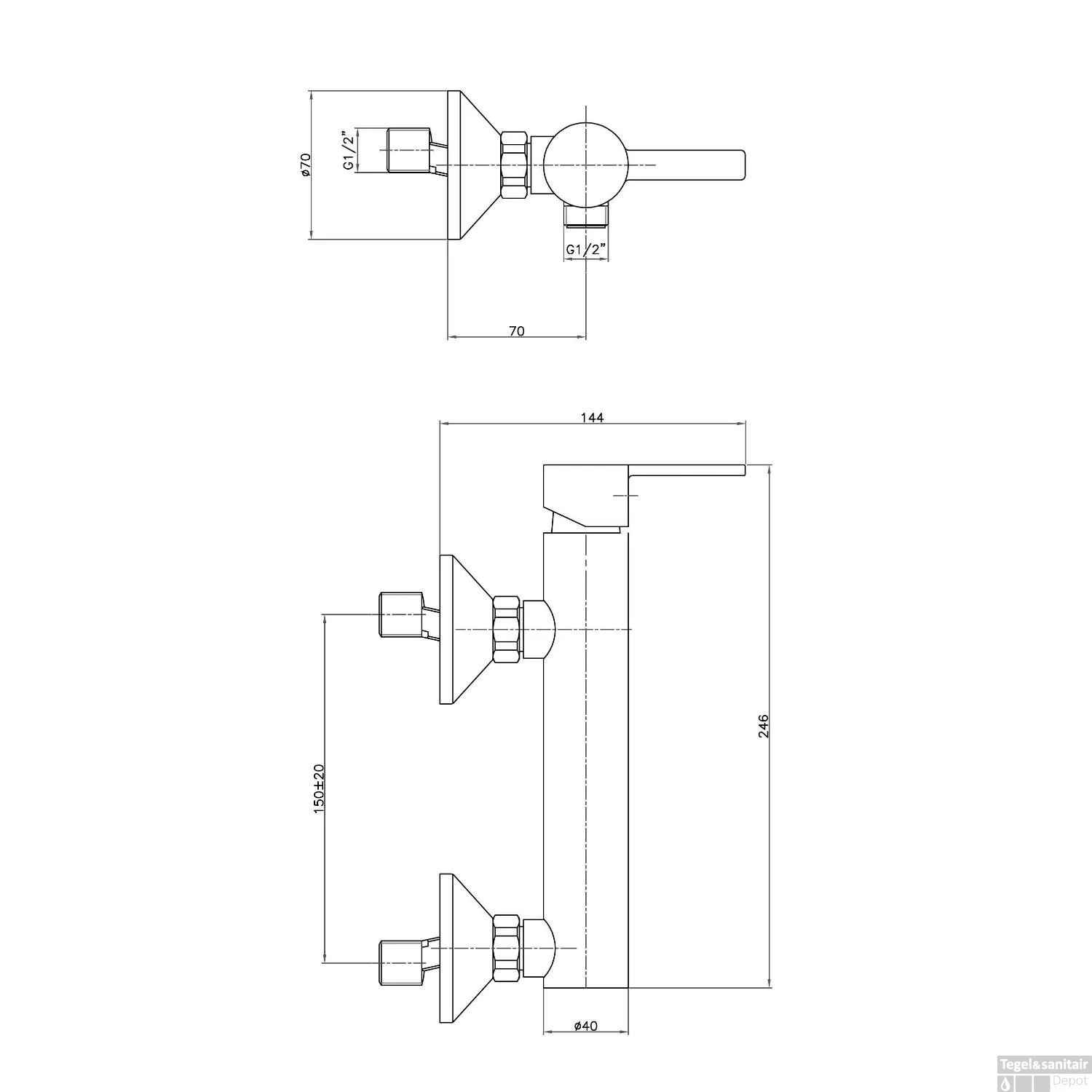 Specificaties Opbouw Douchekraan Sapho Espada Mengkraan 1-hendel Rechts Chroom: