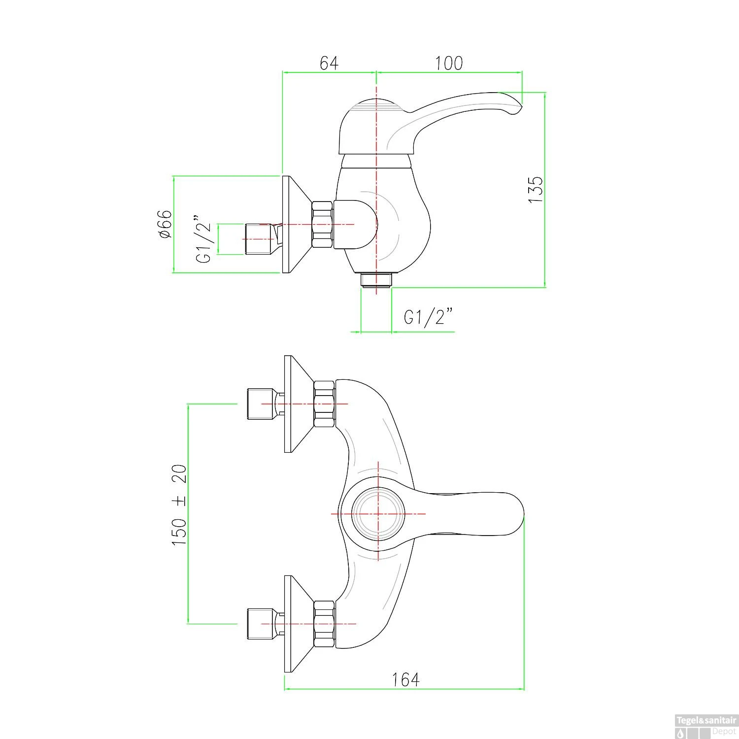 Specificaties Opbouw Douchekraan Mengkraan 1-hendel Brons Sapho Kirké: