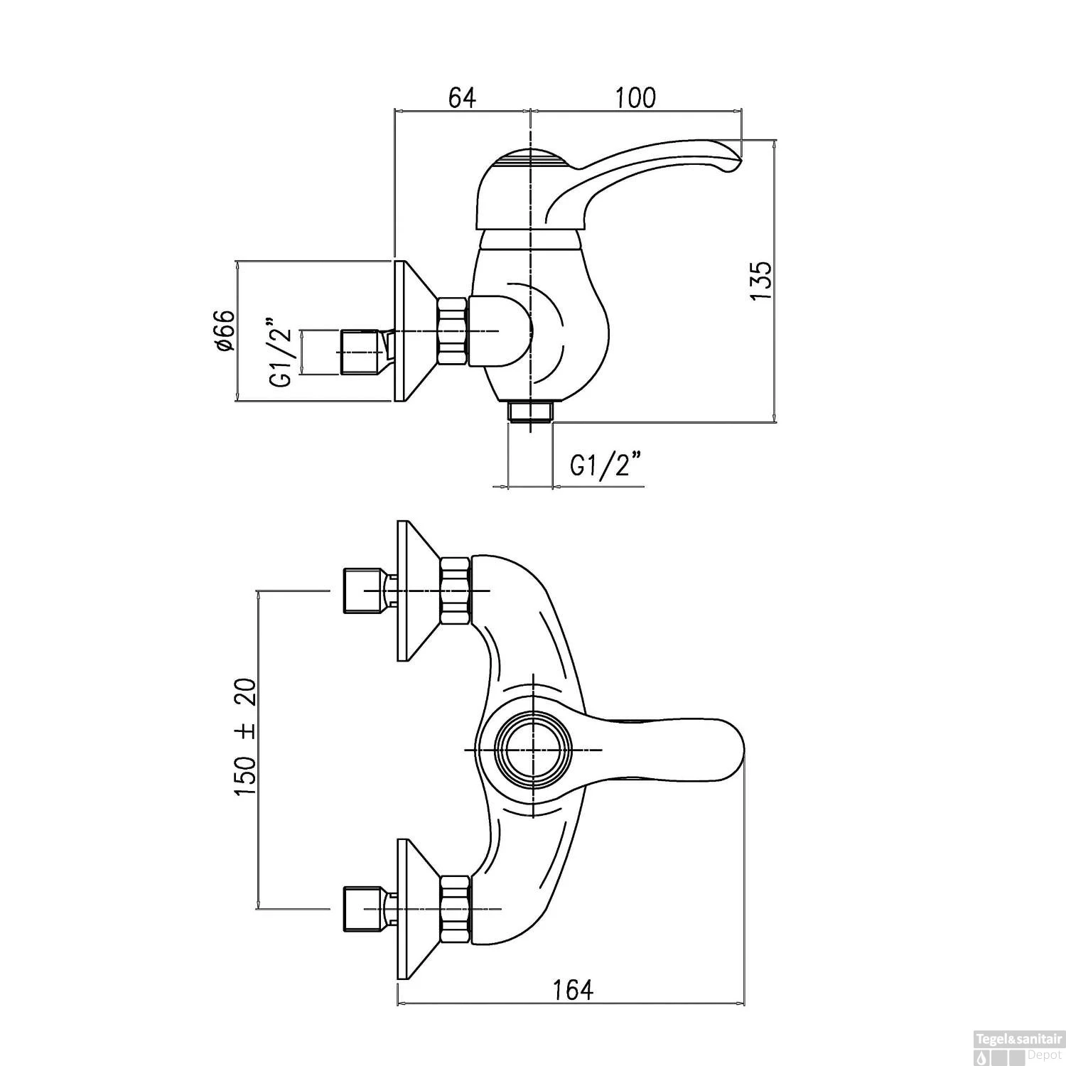 Specificaties Opbouw Douchekraan Mengkraan 1-hendel Goud Sapho Kirké: