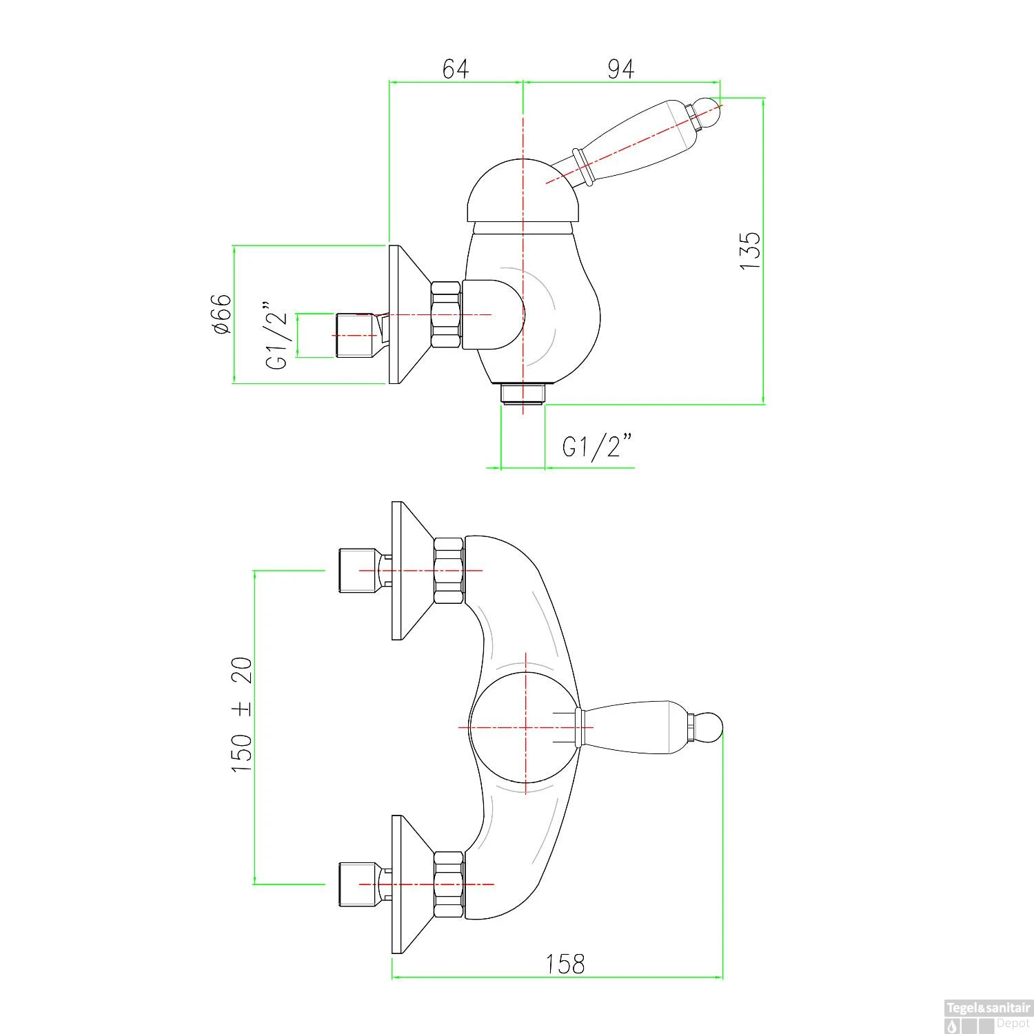 Specificaties Opbouw Douchekraan Mengkraan Retro Wit 1-hendel Chroom Sapho Kirké: