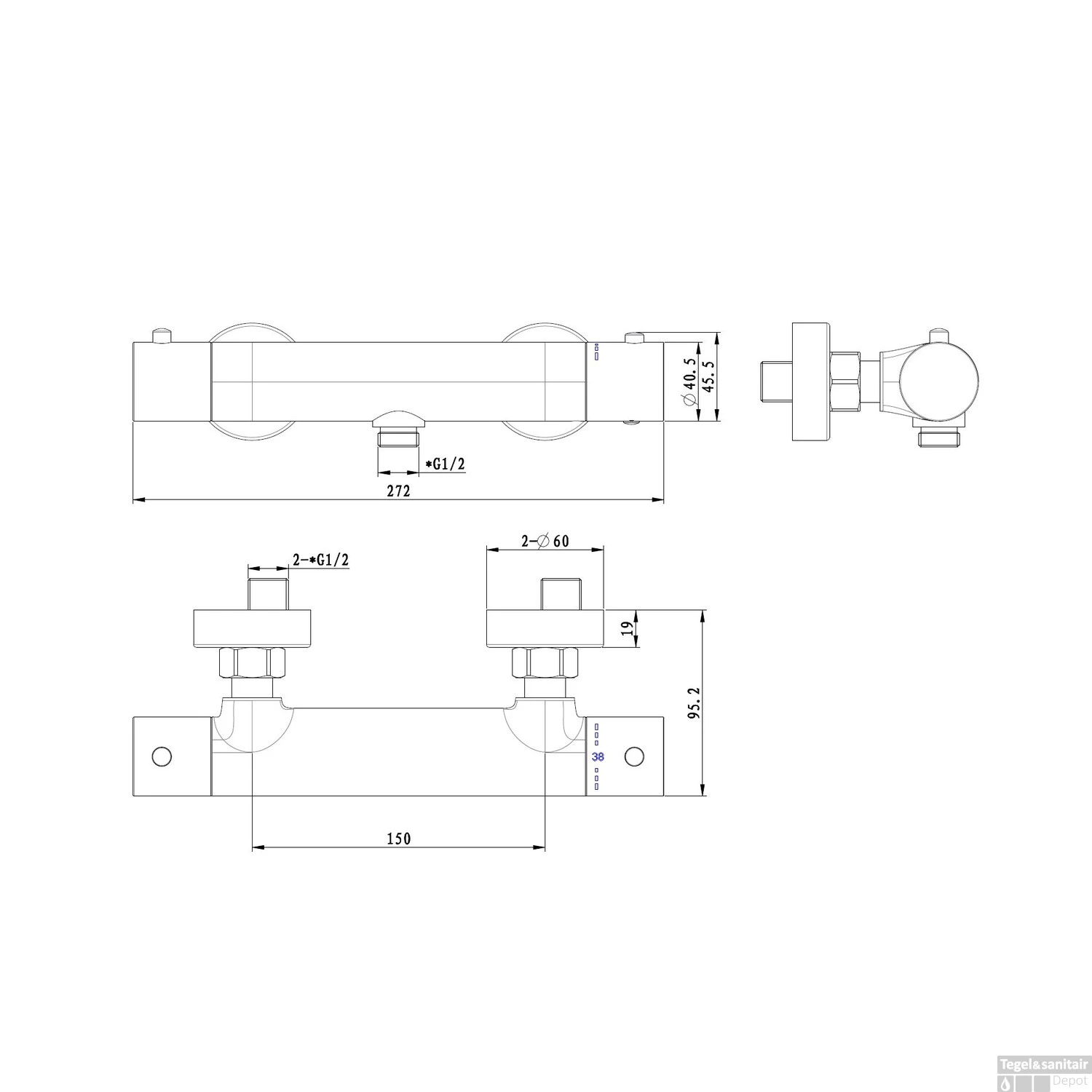 Specificaties Opbouw Douchethermostaat Best Design Dijon Zagaro PVD Brons: