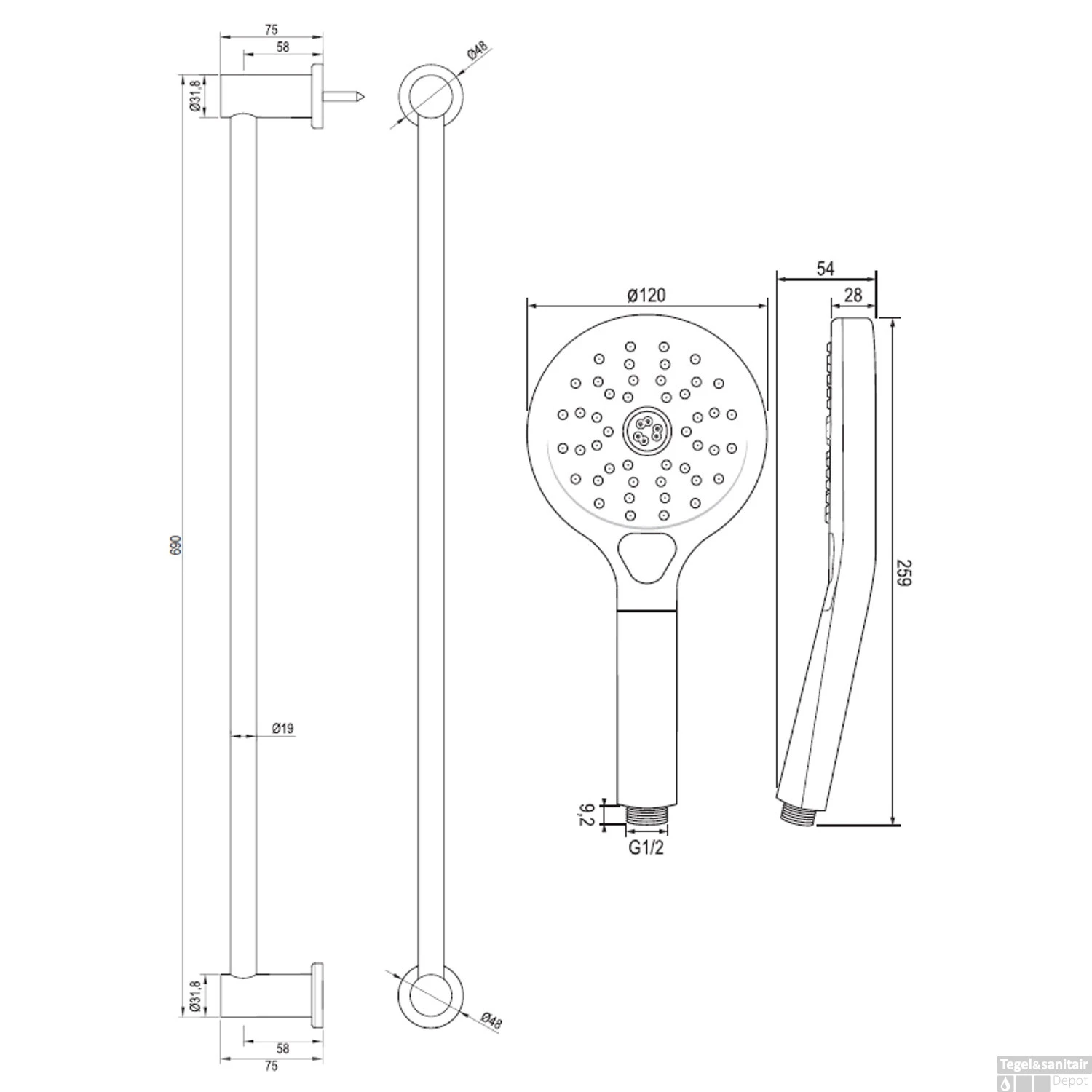 Specificaties Opbouwset Bad- en Douchekraan Brauer Copper Carving Thermostatisch Met Glijstang En Handdouche 3 Standen Geborsteld Koper: