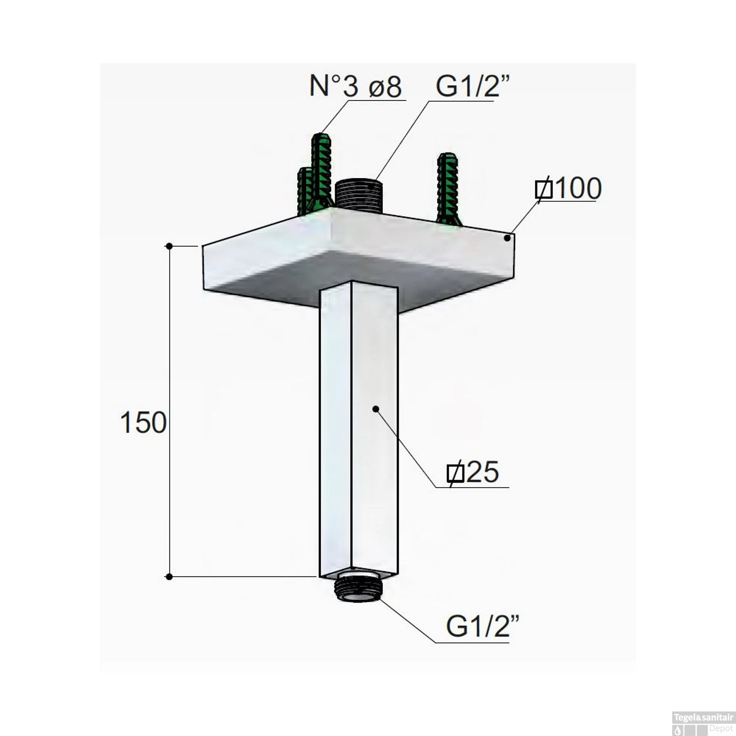 Specificaties Plafonduitloop Hotbath Mate 15 cm Vierkant Verzwaard Chroom