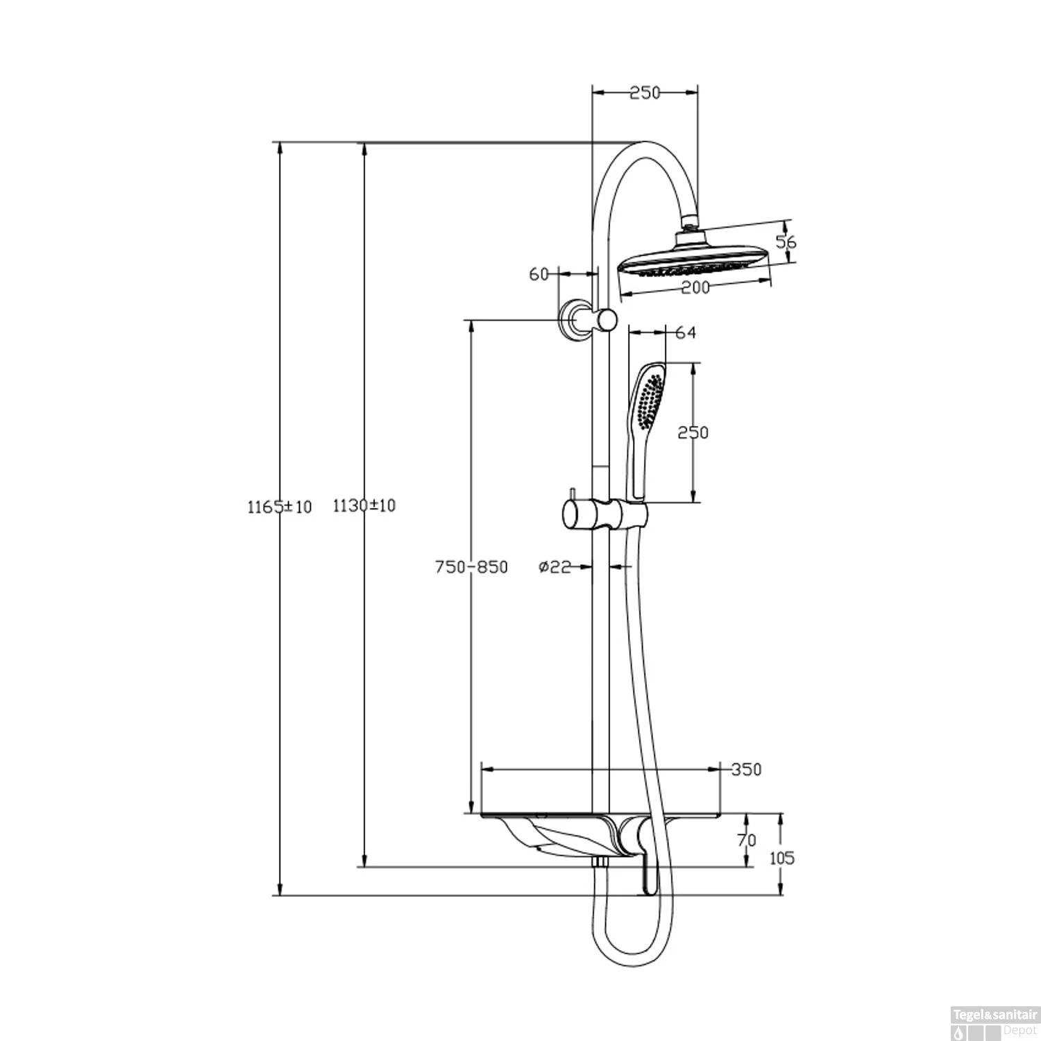 Specificaties Regendouche Eengreepsmengkraan Schutte Waterway met Planchet Chroom Wit:
