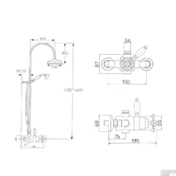 Regendoucheset Opbouw Aqualux Mono 140 Cm Met Thermostaatkraan Chroom