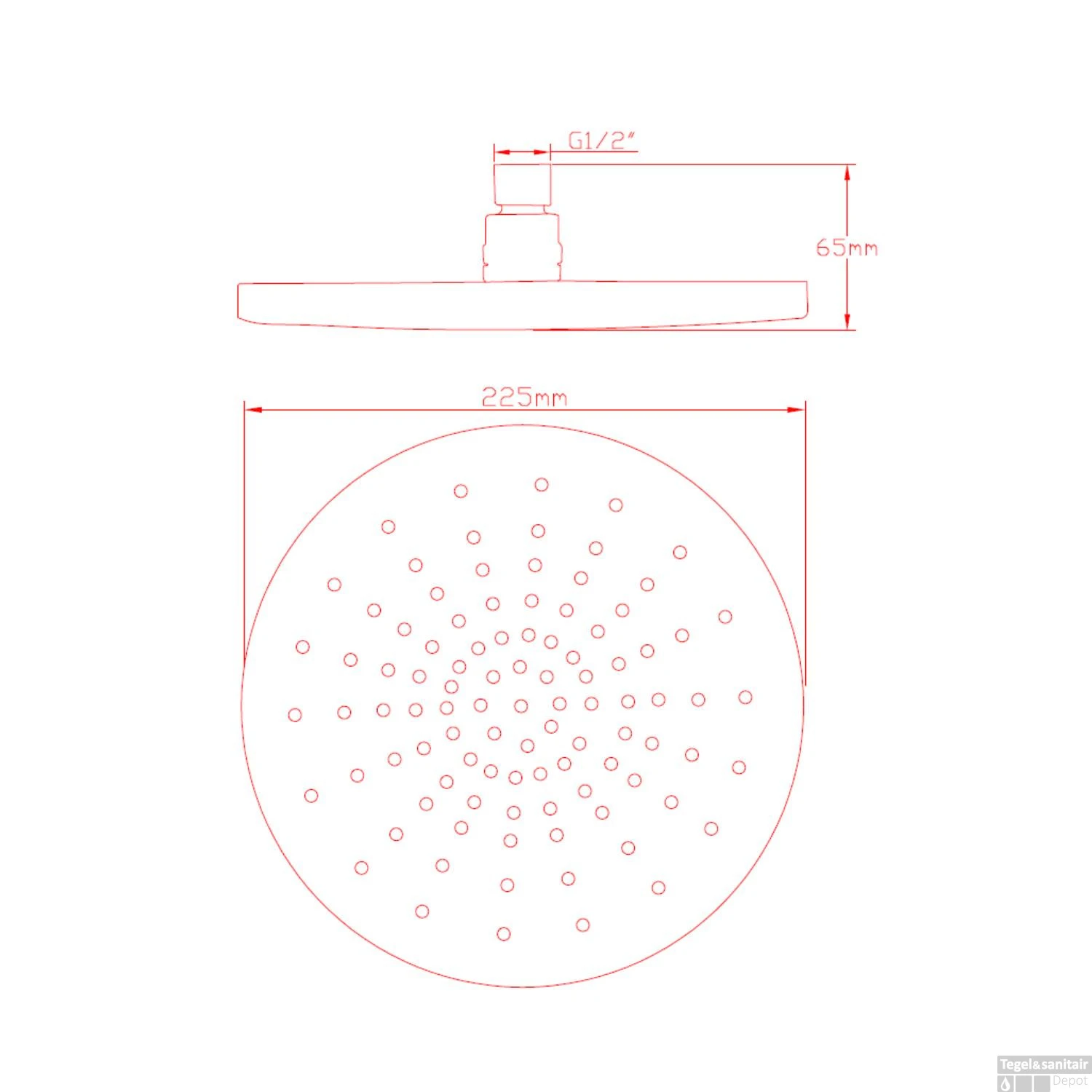 Specificaties Regendouchekop Rond 22.5 cm Chroom Sapho: