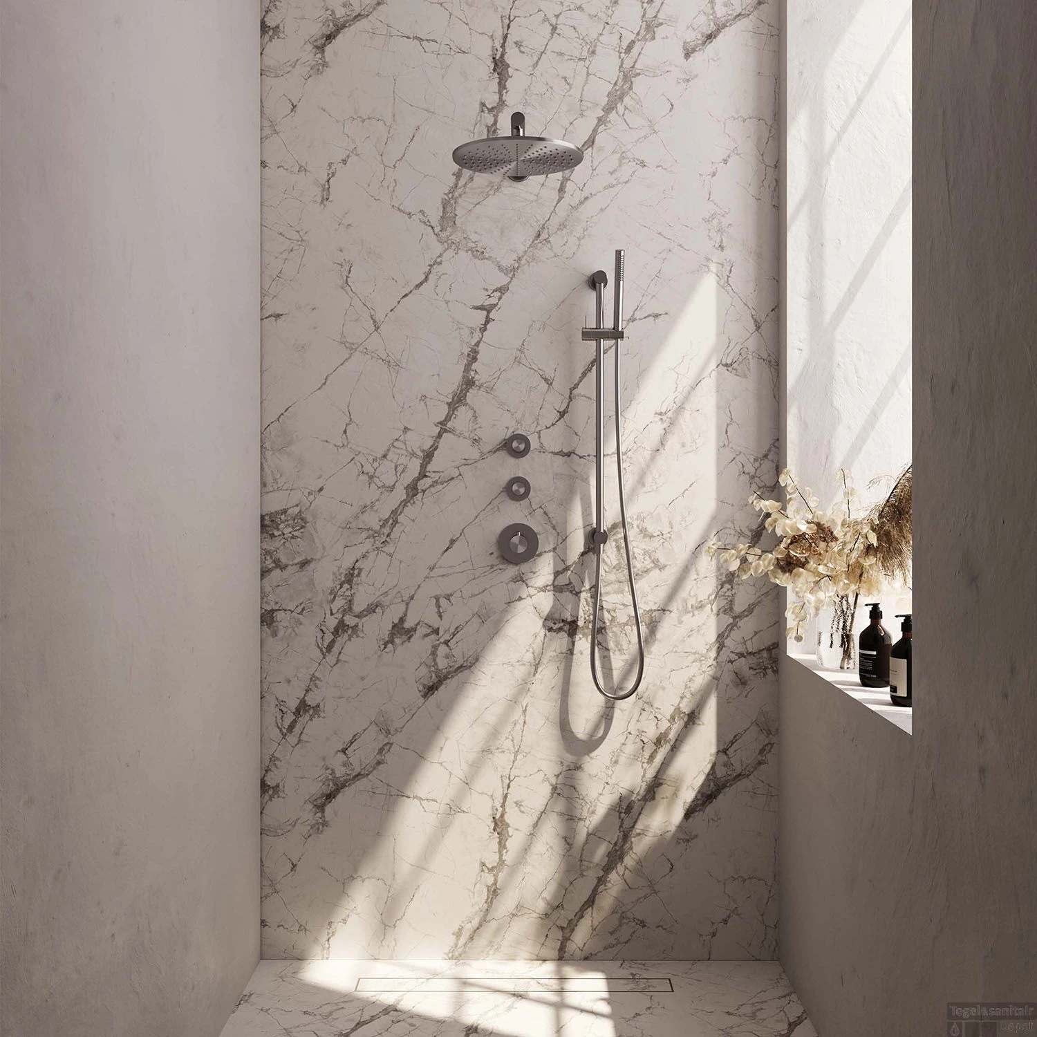 Deze set heeft een luxueuze uitstraling door de geborstelde RVSkleur. Zo kunt u heerlijk genieten van uw douche in een prachtige badkamer.