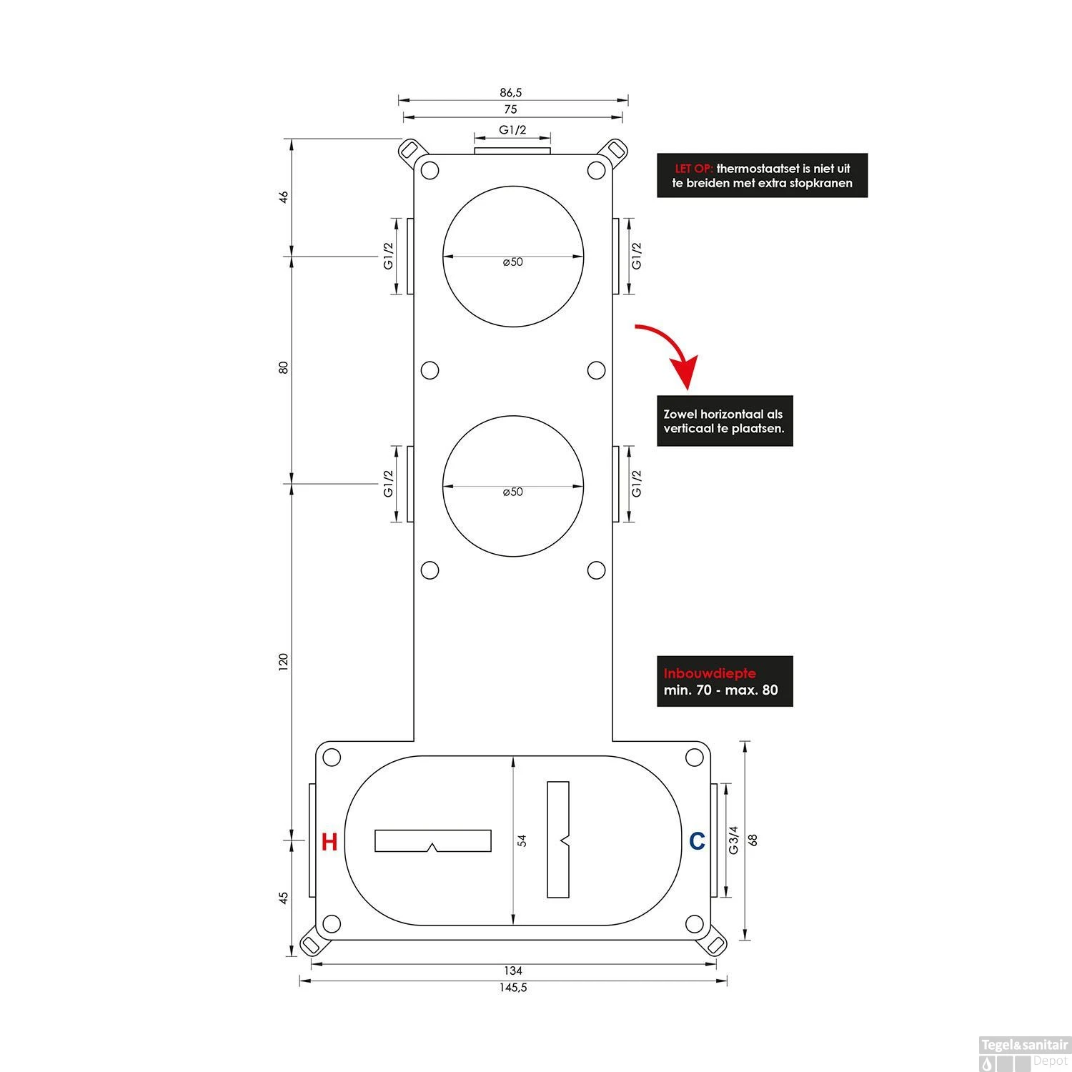 Wilt u graag wat luxe in uw badkamer halen? Dan is deze regendoucheset een zeer goede keuze. Deze regendoucheset bestaat uit een thermostaatkraan, staafhanddouche en regendouche van 30 cm. De inbouwthermostaat is gemakkelijk te bedienen. Met de onderste knop stelt u de gewenste watertemperatuur in. Met de bovenste knop bepaalt u de gewenste douchestand en switcht u tussen hoofd- en handdouche. De thermostaat is voorzien van een temperatuurblokkering bij 38°C.