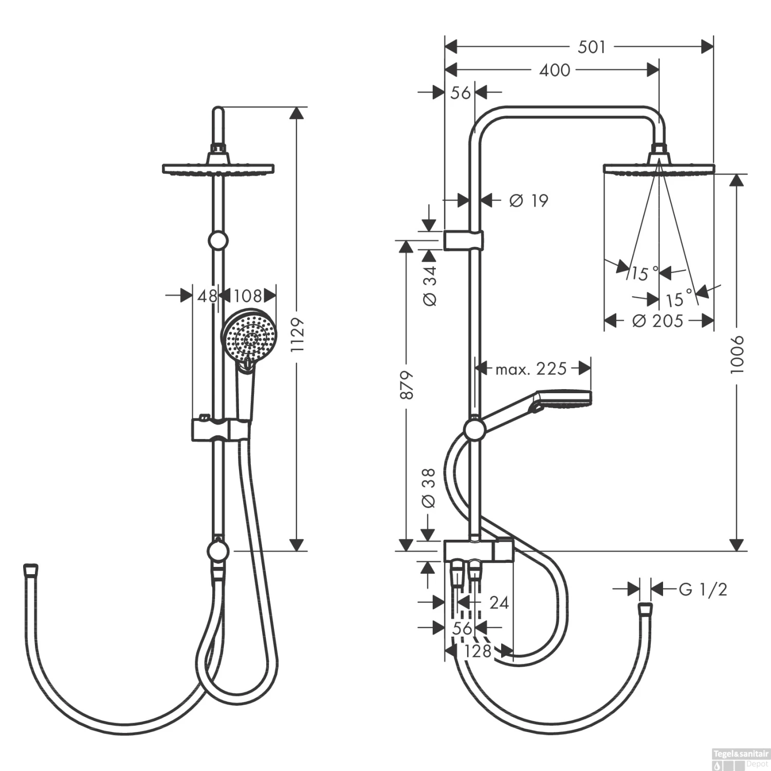 - Hoofddouche standen: 1