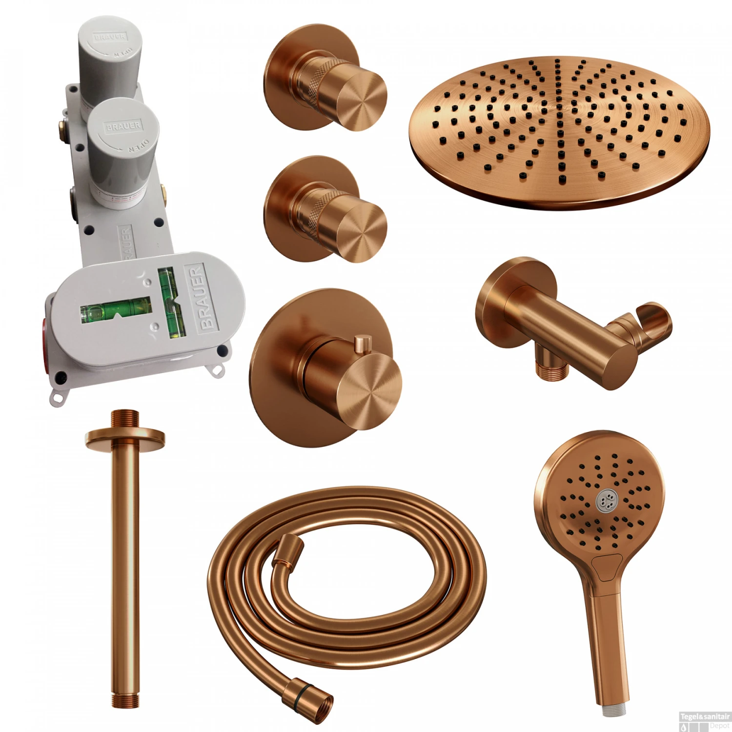 Thermostatisch Inbouwdoucheset Brauer Copper 30cm Hoofddouche Plafondarm 3 Standen Handdouche Koper