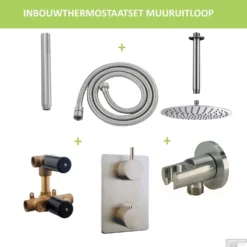 Specificaties Thermostatisch Inbouwdoucheset BWS Plafonduitloop Rond 20 cm Geborsteld RVS: