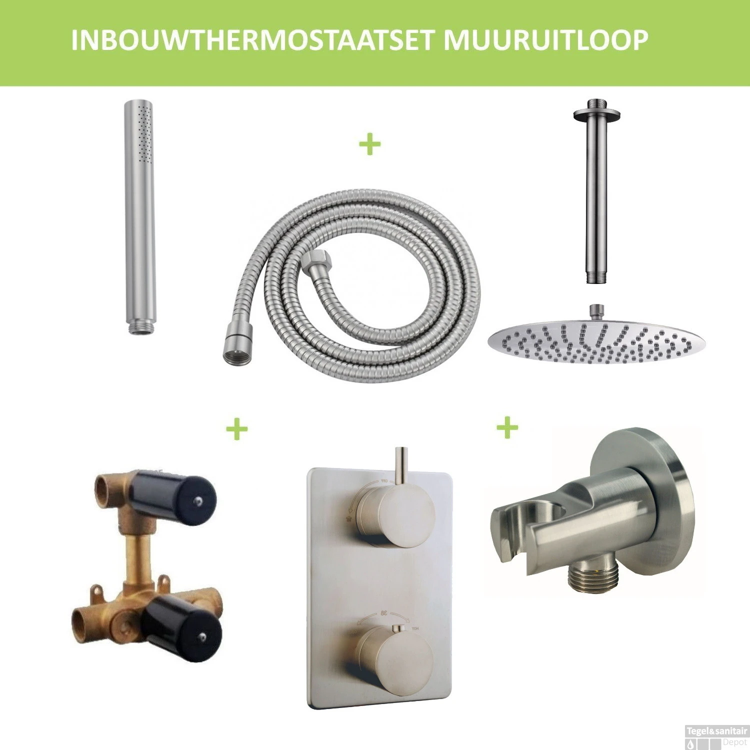 Thermostatisch Inbouwdoucheset BWS Plafonduitloop Rond 20 cm Geborsteld RVS
