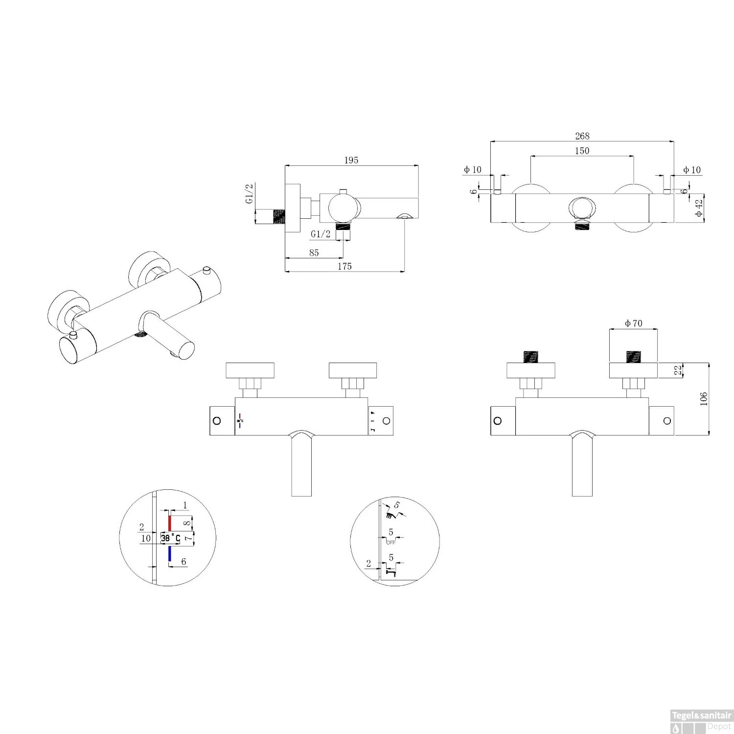 Specificaties Thermostatische Badmengkraan Boss & Wessing Met Cool Touch Chroom: