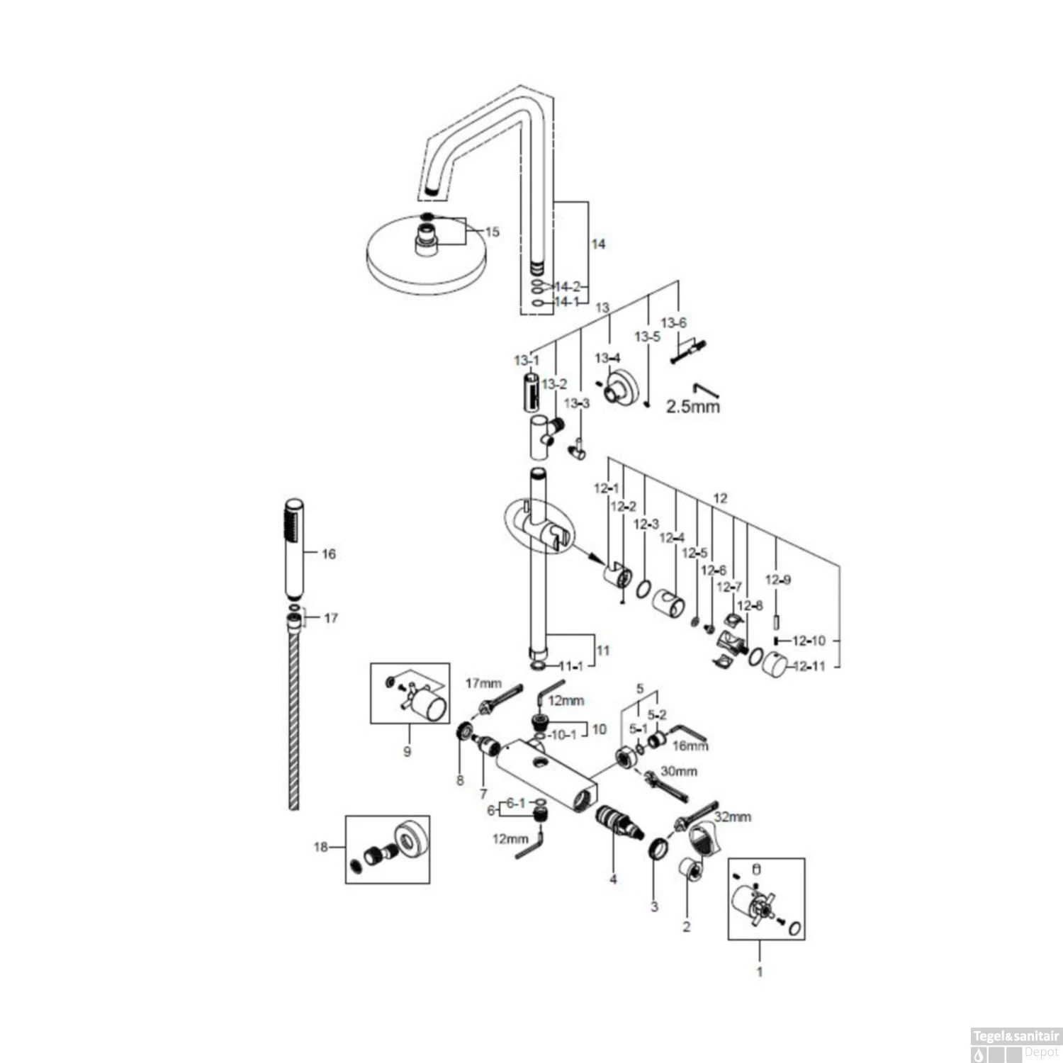 - – 20 cm Hoofddouche