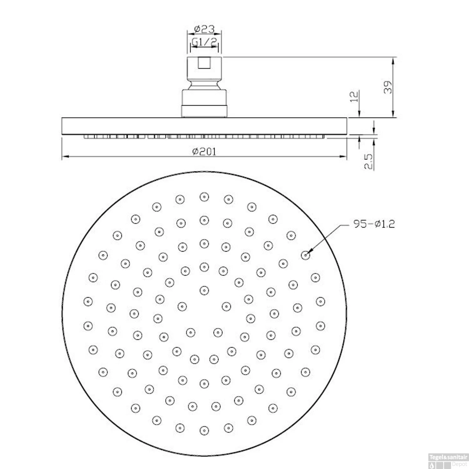 - – Douchekop rond 20 cm