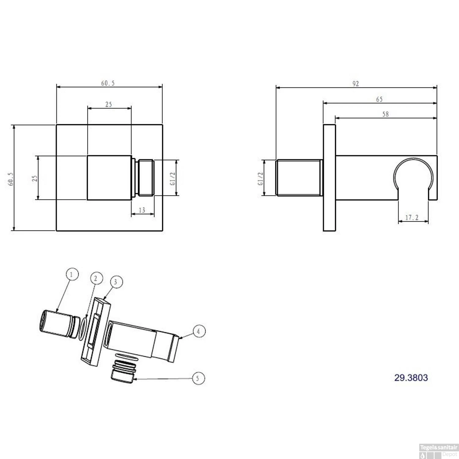Specificaties Thermostatische Inbouw Regendouche Set Wandarm 20 cm Vierkant Wiesbaden Type 5:
